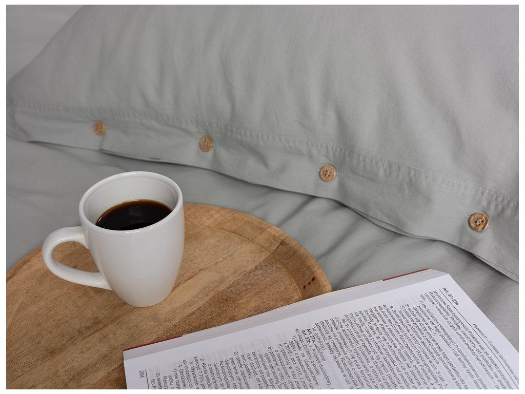 Minimalistický dizajn je doplnený jemnými detailmi – ozdobnými gombíkmi a elegantnou nášivkou, ktoré dodávajú posteľnej bielizni jedinečný charakter a podčiarkujú jej moderný štýl.