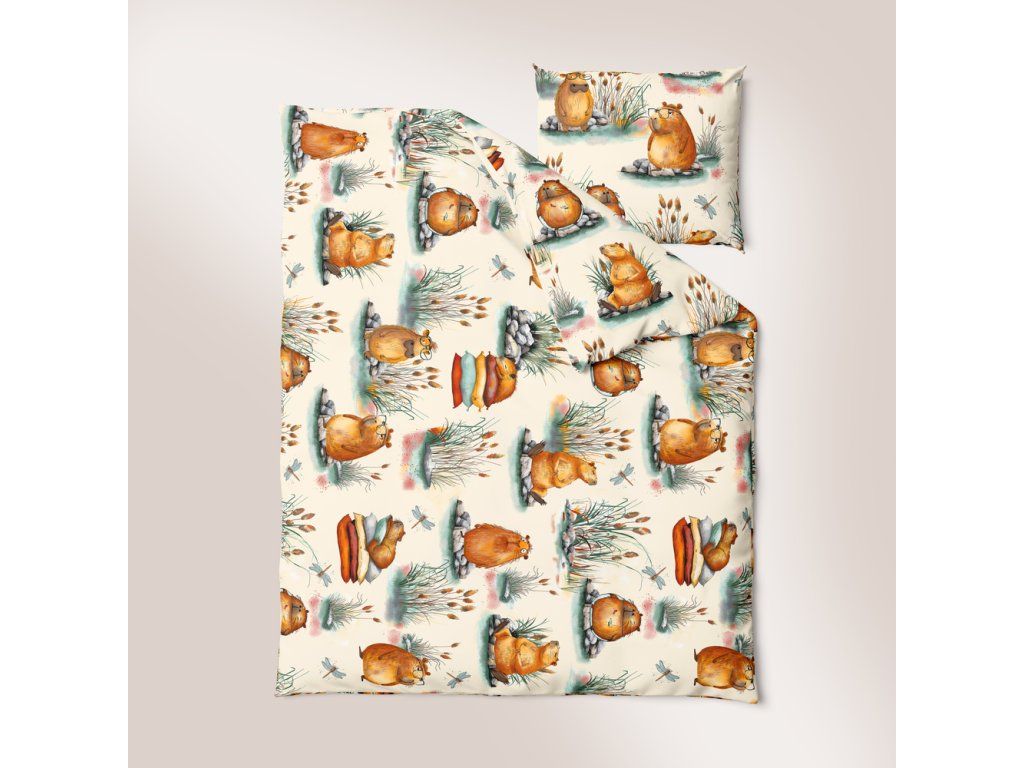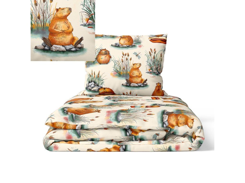 Posteľná bielizeň s kapybarami 100x140 posteľná bielizeň kapybara ecru CERTFIKAT - 100% bavlna