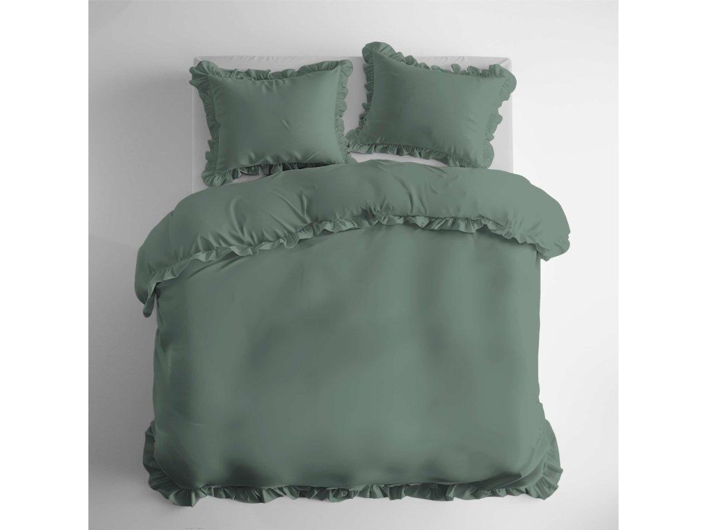 Posteľná bielizeň s volánom 160x200cm 100% BAVLNA posteľná bielizeň v štýle BOHO farba MÄTA / MINT
