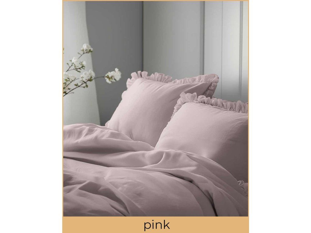 Posteľná bielizeň s volánom 160x200cm 100% BAVLNA posteľná bielizeň v štýle BOHO farba RUŽOVÁ / PINK