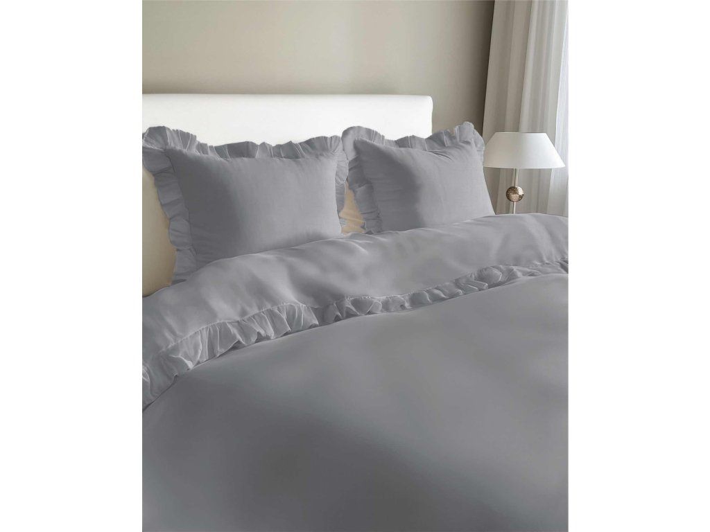 Posteľná bielizeň s volánom 160x200cm 100% BAVLNA posteľná bielizeň v štýle BOHO farba SV.SIVÁ / L. GREY