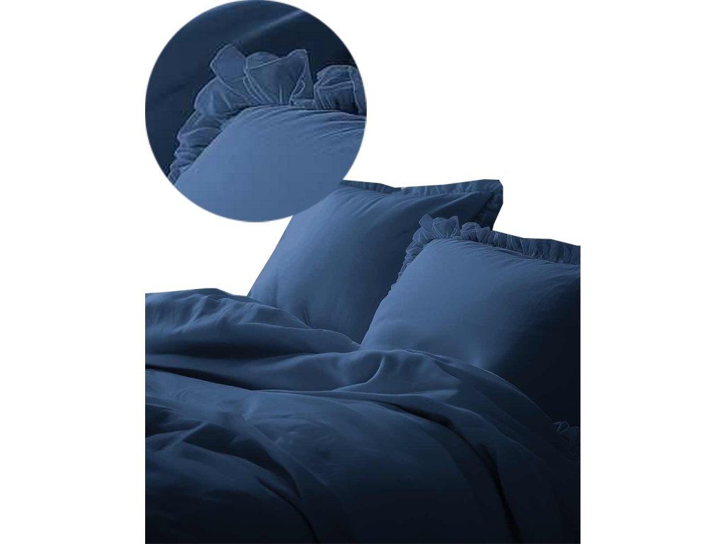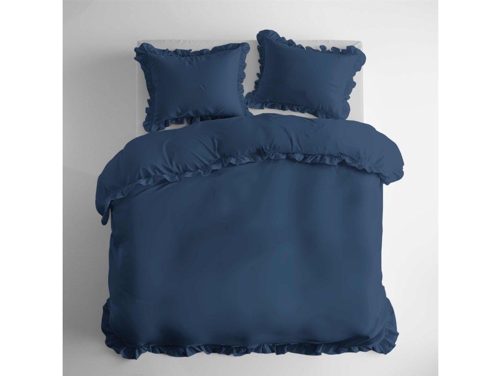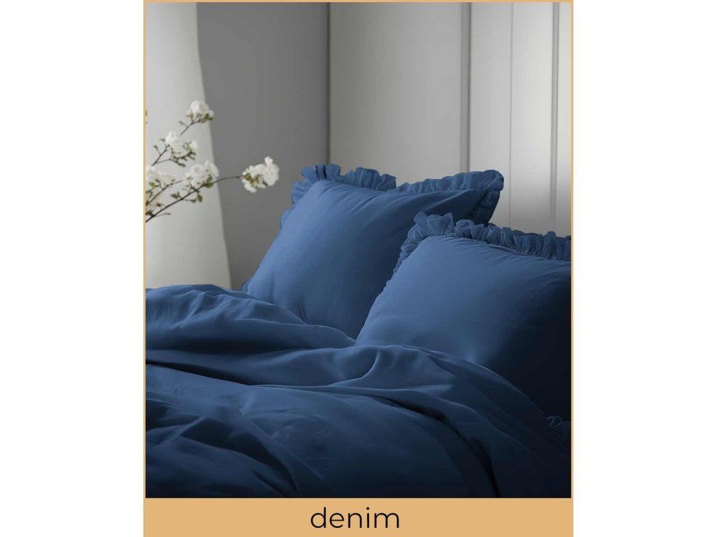Posteľná bielizeň s volánom 220x200cm 100% BAVLNA posteľná bielizeň v štýle BOHO farba DENIM
