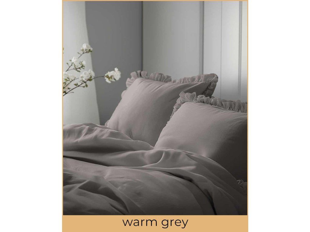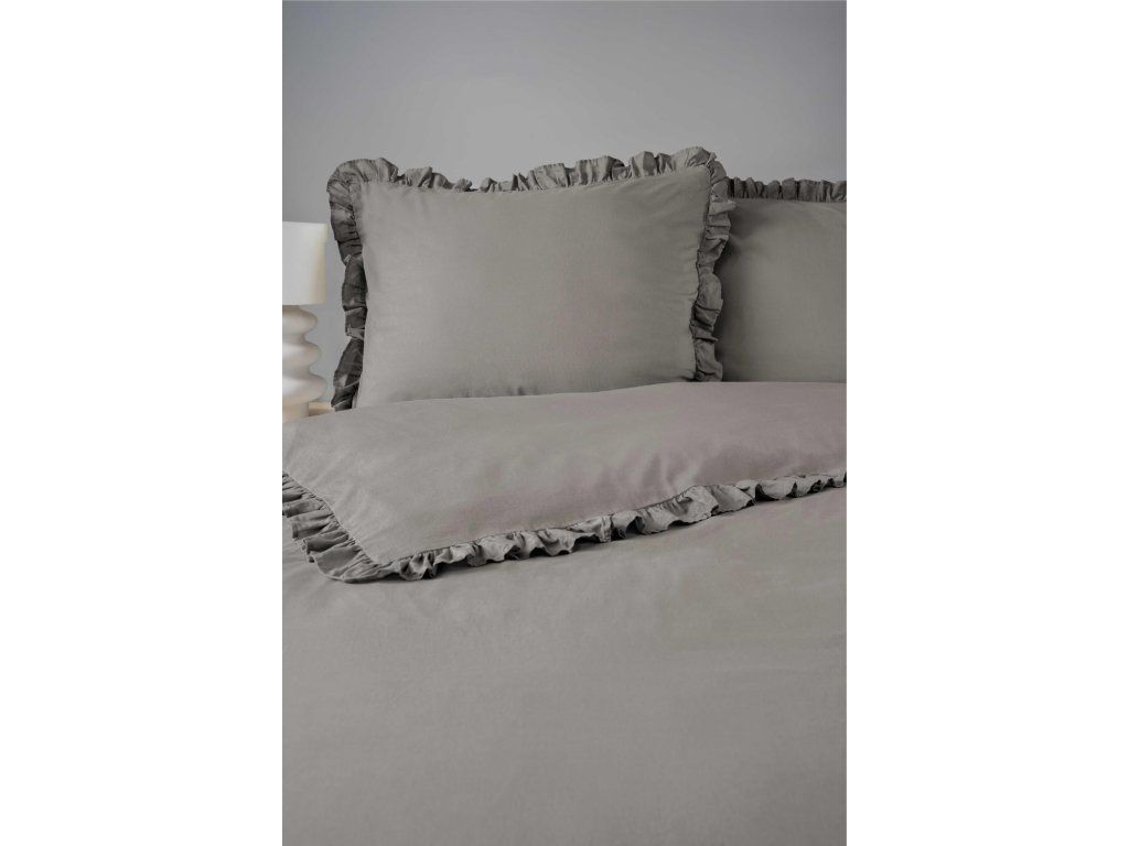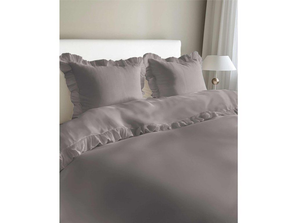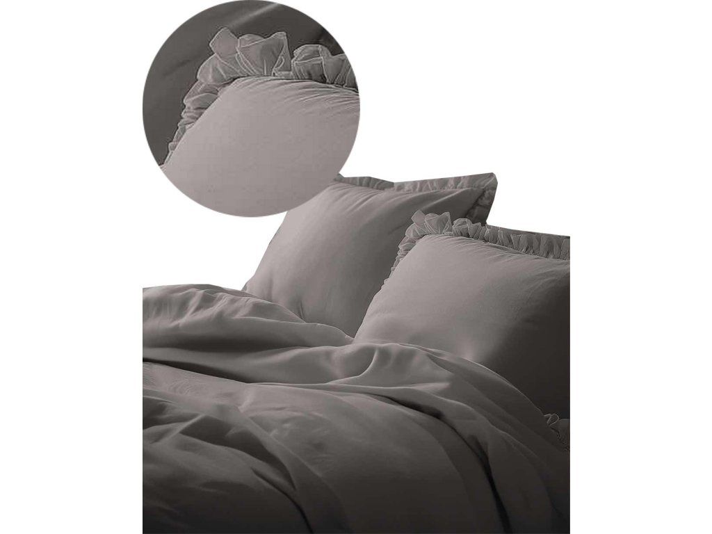 Posteľná bielizeň s volánom 220x200cm 100% BAVLNA posteľná bielizeň v štýle BOHO farba TMAVOSIVÁ / WARM GREY