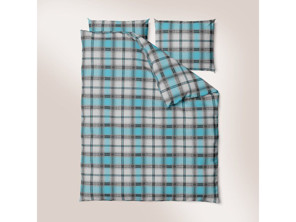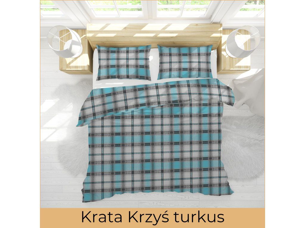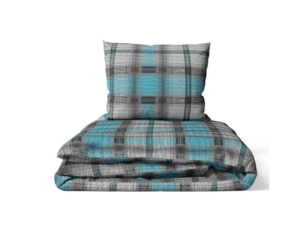 Posteľná bielizeň z kôry 140x200 + obliečka 70x80 - Káro Krzyś tyrkys