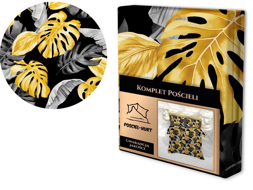 POSTEĽNÁ BIELIZEŇ Z KÔRY 160x200 + 2x70x80 Bavlna 100% Bielawa - ČIERNE LISTY 3D