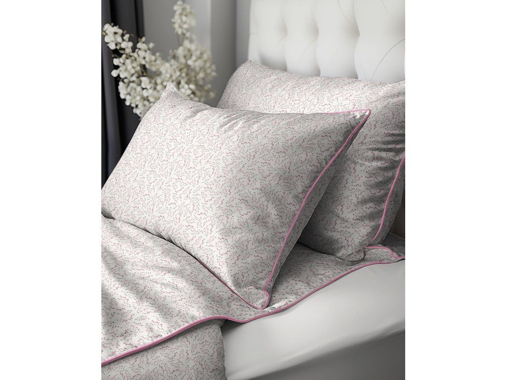 Každá súprava je zakončená plochým lemovaním, ktoré dodáva obliečkam luxusný vzhľad a zabraňuje deformácii tkaniny počas používania. Navyše obliečky na vankúše majú jemné prispôsobenie, čo pridáva eleganciu a výnimočný charakter.