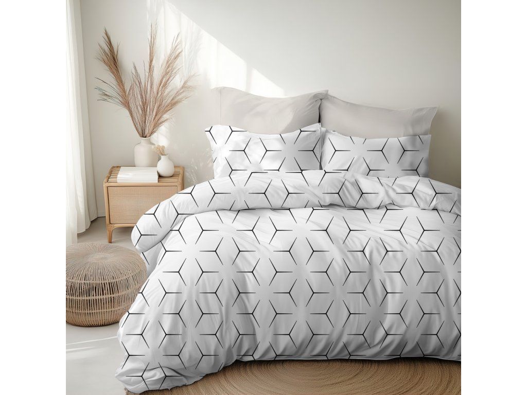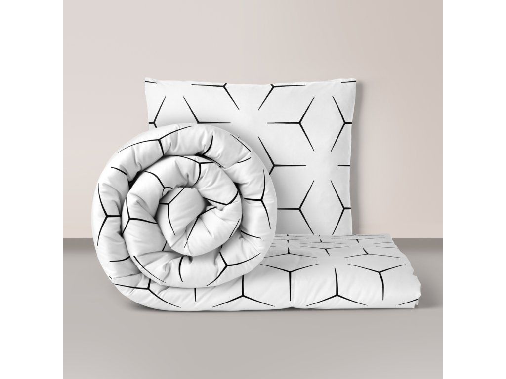 Posteľné obliečky 140x200cm, 70x80cm, 140g/m2, 100% bavlna : MILANO BIELO ČIERNE