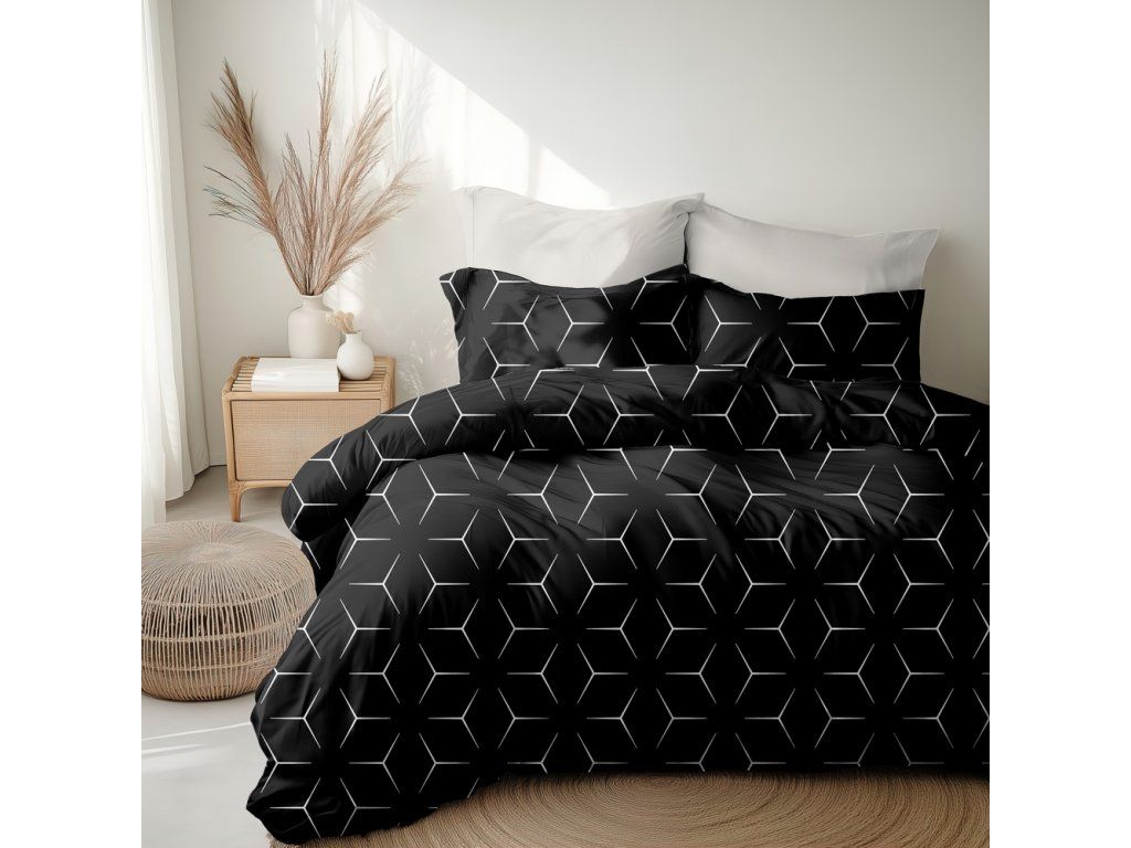 Posteľné obliečky 140x200cm, 70x80cm, 140g/m2, 100% bavlna : MILANO ČIERNO BIELE