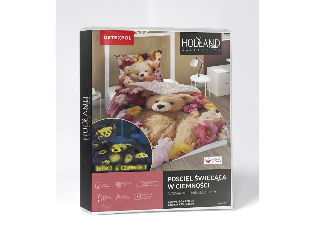 Obliečky svietiace v tme značky Holland Young Collection boli vytvorené s ohľadom na mladších zákazníkov. Mládežnícke motívy, intenzívne farby a efekt svietenia v tme zatraktívnia vzhľad izby dieťaťa alebo tínedžera.
