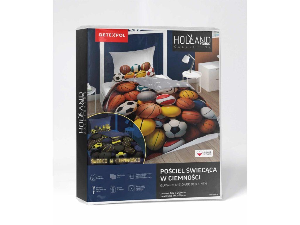 Obliečky svietiace v tme značky Holland Young Collection boli vytvorené s ohľadom na mladších zákazníkov. Mládežnícke motívy, intenzívne farby a efekt svietenia v tme zatraktívnia vzhľad izby dieťaťa alebo tínedžera.