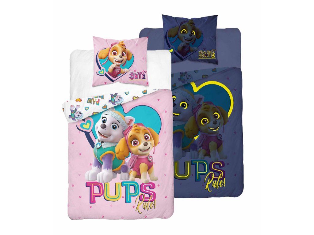 POSTEĽNÉ OBLIEČKY 140x200cm SVETLIACE V TME, PP_30 - Labková patrola odtiene ružovej