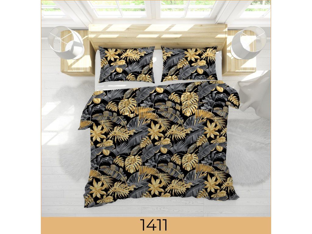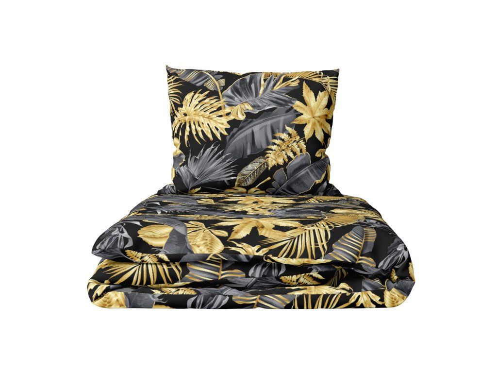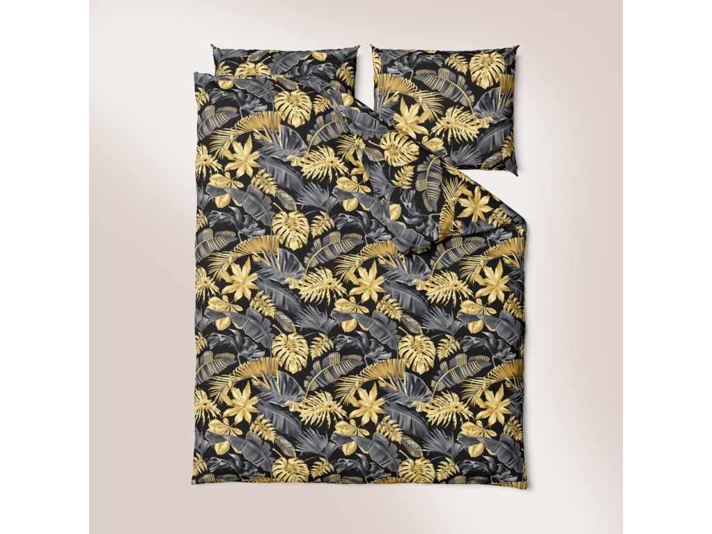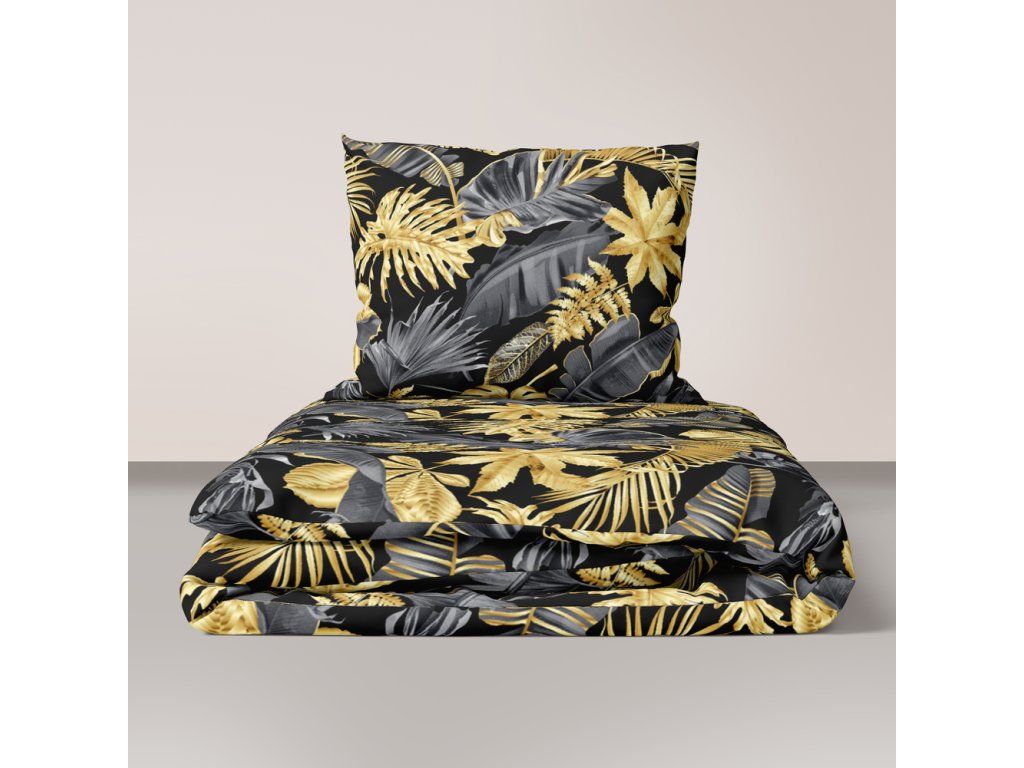 Súprava posteľnej bielizne 220x200 cm z prírodnej bavlny so vzorom zlatých a sivých listov, zabezpečuje komfortný spánok a elegantný vzhľad spálne. Posteľná bielizeň sa zapína na zips, je nenáročná na údržbu, možno prať pri 40°C. Ideálna ako darčekDodatočné parametre