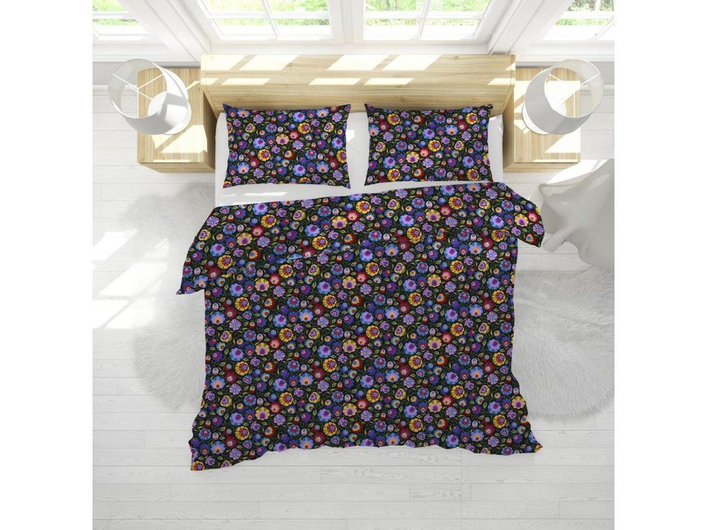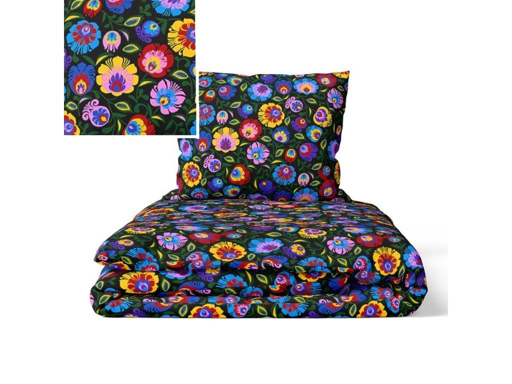 Súprava posteľnej bielizne 160x200cm + dve obliečky na vankúš 70x80cm, 100% bavlna. Vzor: Łowicki čiernyDodatočné parametre