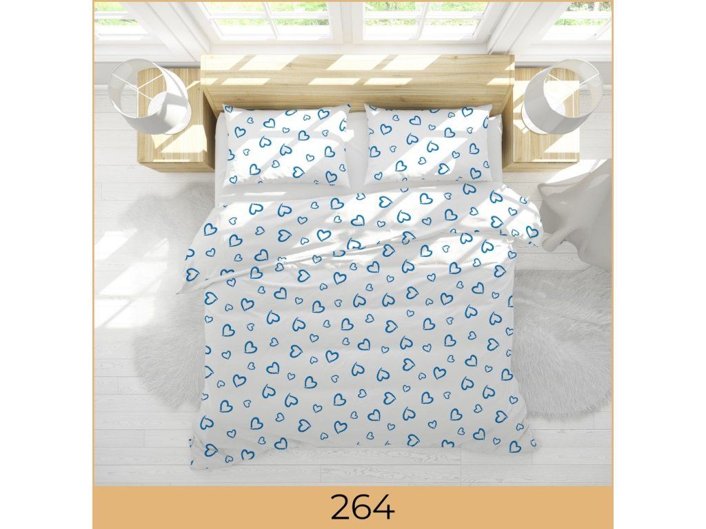 Súprava posteľnej bielizne 160x200cm + dve obliečky 70x80cm, 100% bavlna. Vzor: 264 - modré srdiečka na svetlom pozadí, valentínsky motívDodatočné parametre