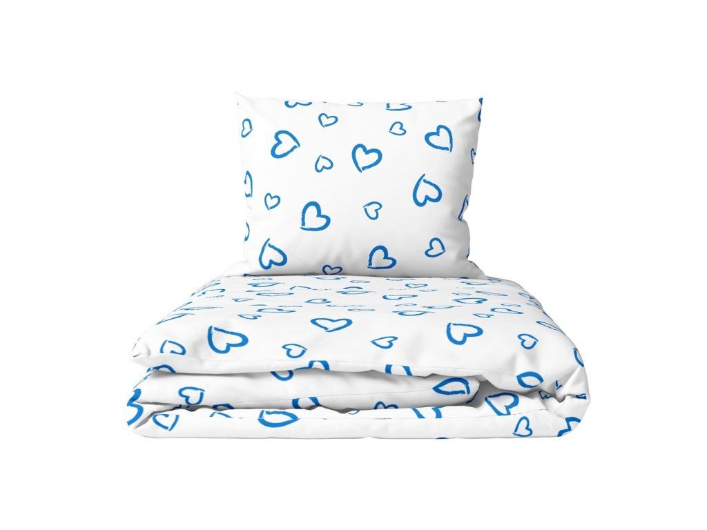 Súprava obliečok 160x200 + 2x70x80, 100% bavlna, 140g/m2, vzor: modré srdcia