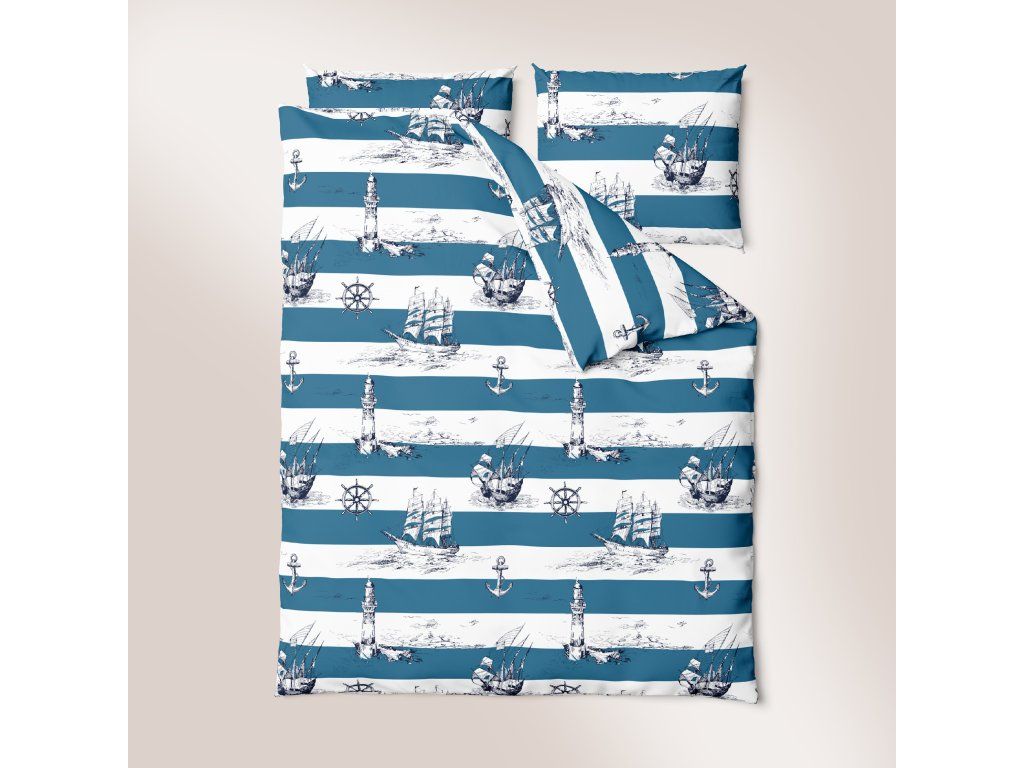 Súprava obliečok 160x200cm + dve obliečky 70x80cm, 100% bavlna. Vzor: NámorníckyDodatočné parametre