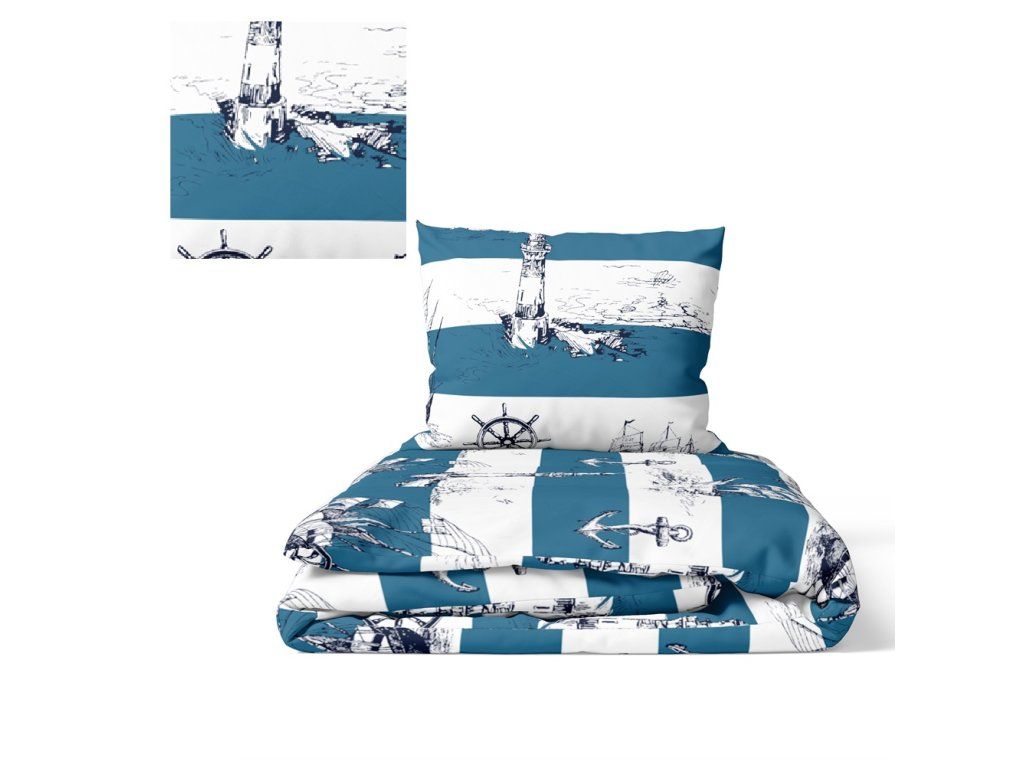 Súprava obliečok 160x200 + 2x70x80, 100% bavlna, 140g/m2, vzor: Námornícky