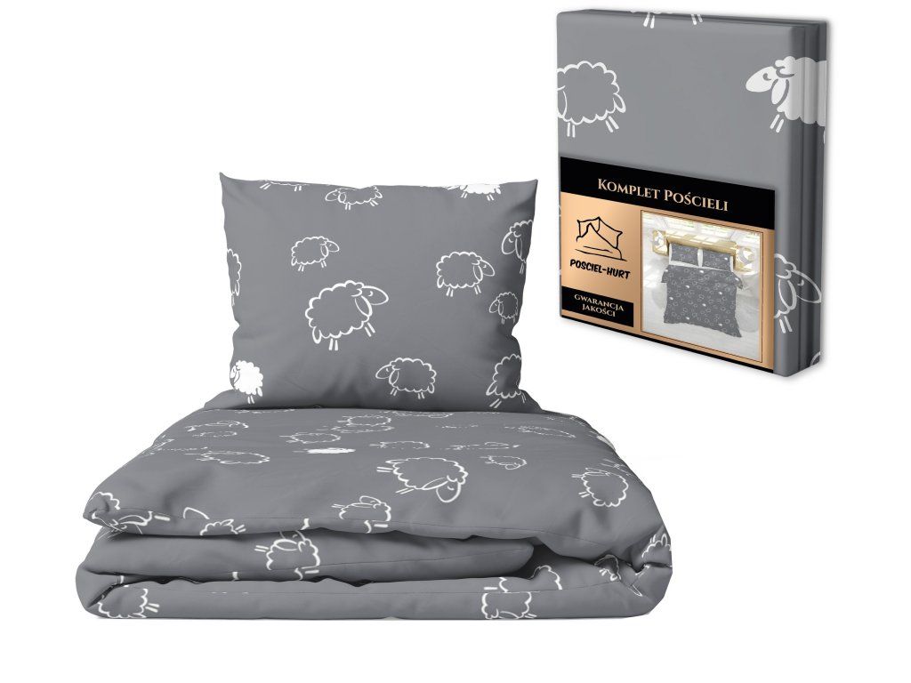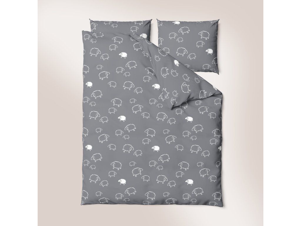 Súprava obliečok 160x200 + 2x70x80, 100% bavlna, 140g/m2, vzor: Sivé ovečky
