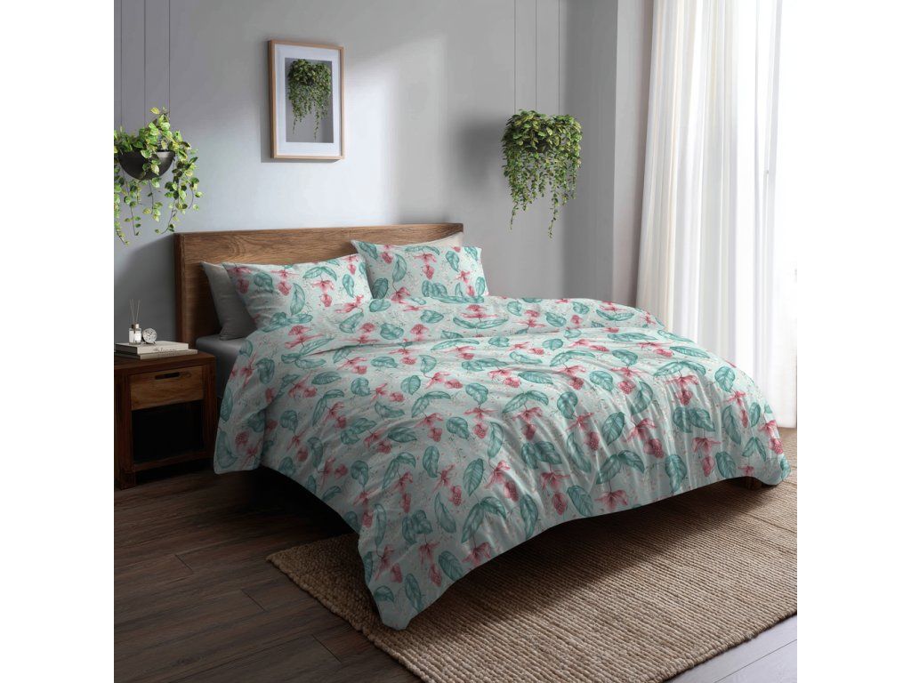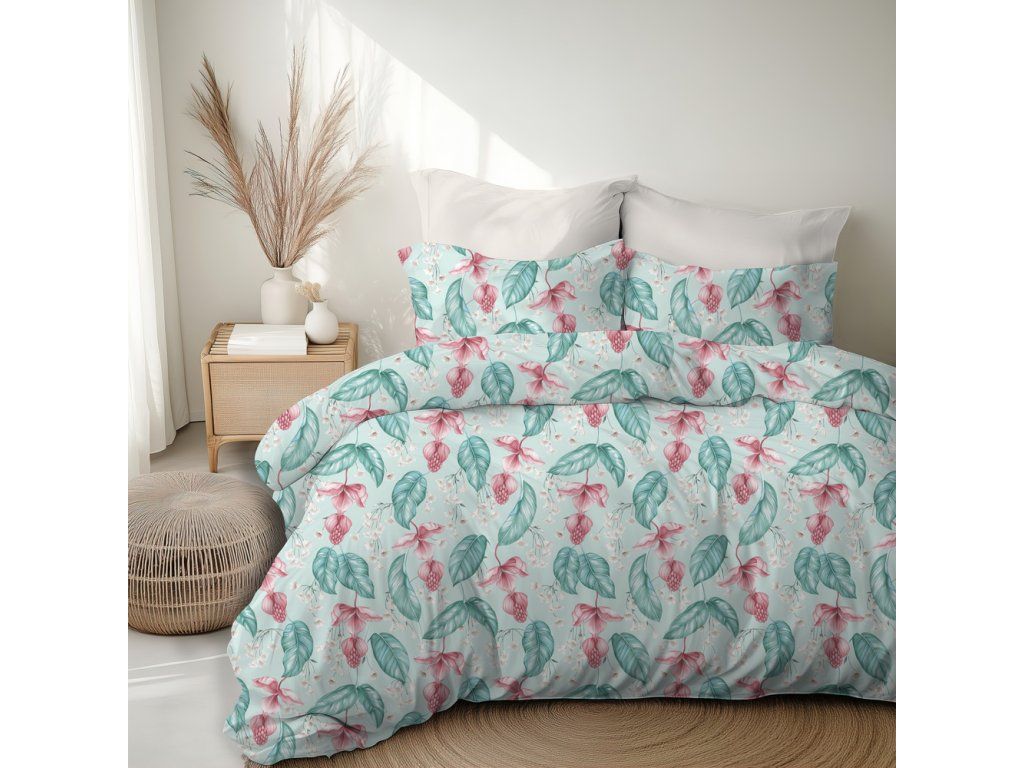 Súprava posteľnej bielizne 160x200 + 2x 70x80, 100% bavlna, 140g/m2, vzor: Kvet púšte Mätová