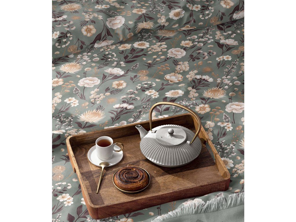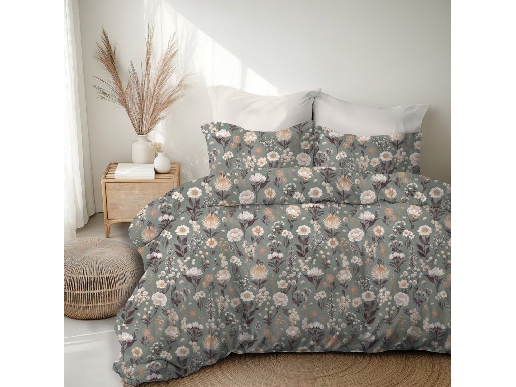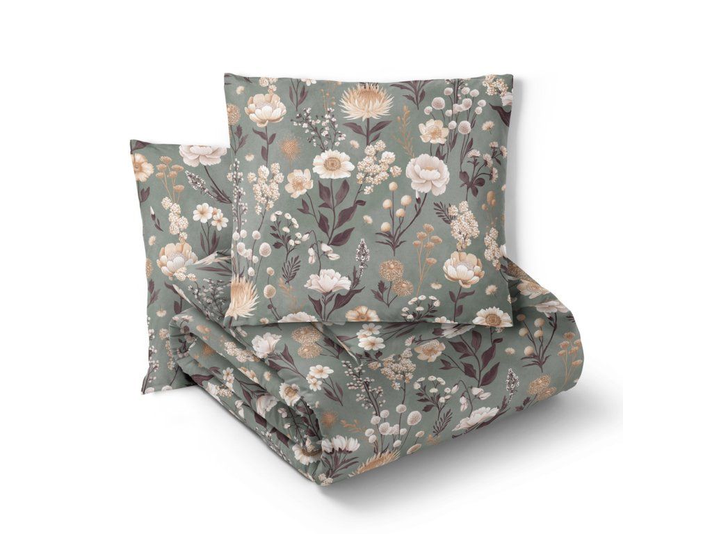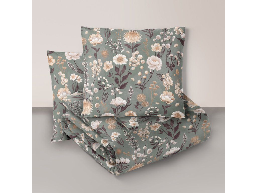 Súprava posteľnej bielizne 160x200 + 2x 70x80, 100% bavlna, 140g/m2, vzor: Kvetinová záhrada na zelenej