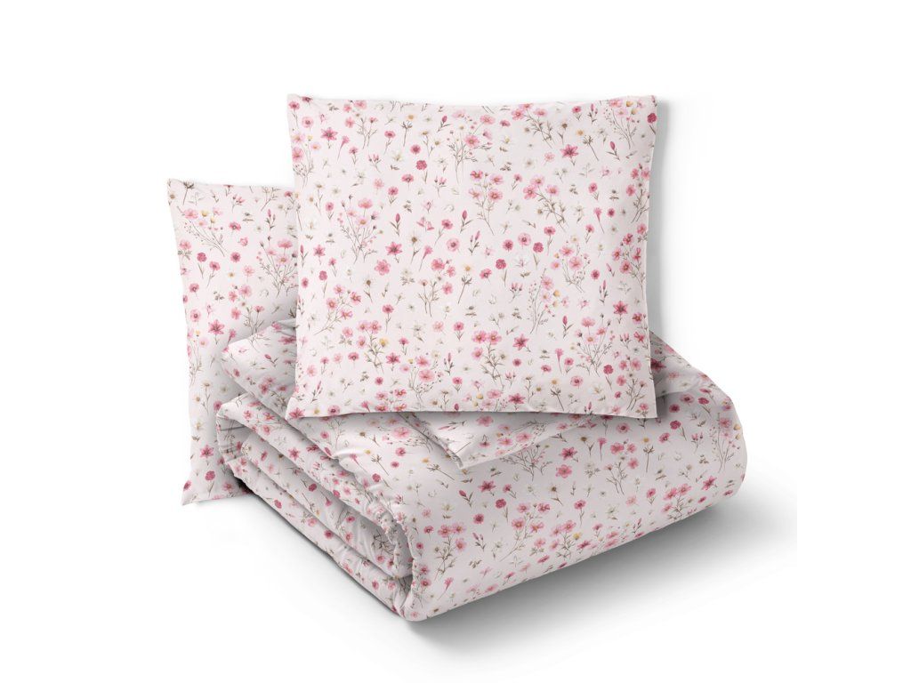 Súprava posteľnej bielizne 160x200 + 2x 70x80, 100% bavlna, 140g/m2, vzor: Lúčna zmes Mini Ružová