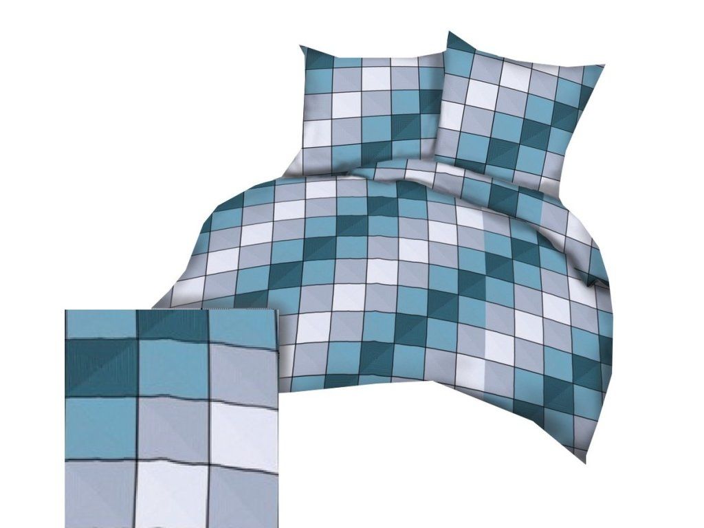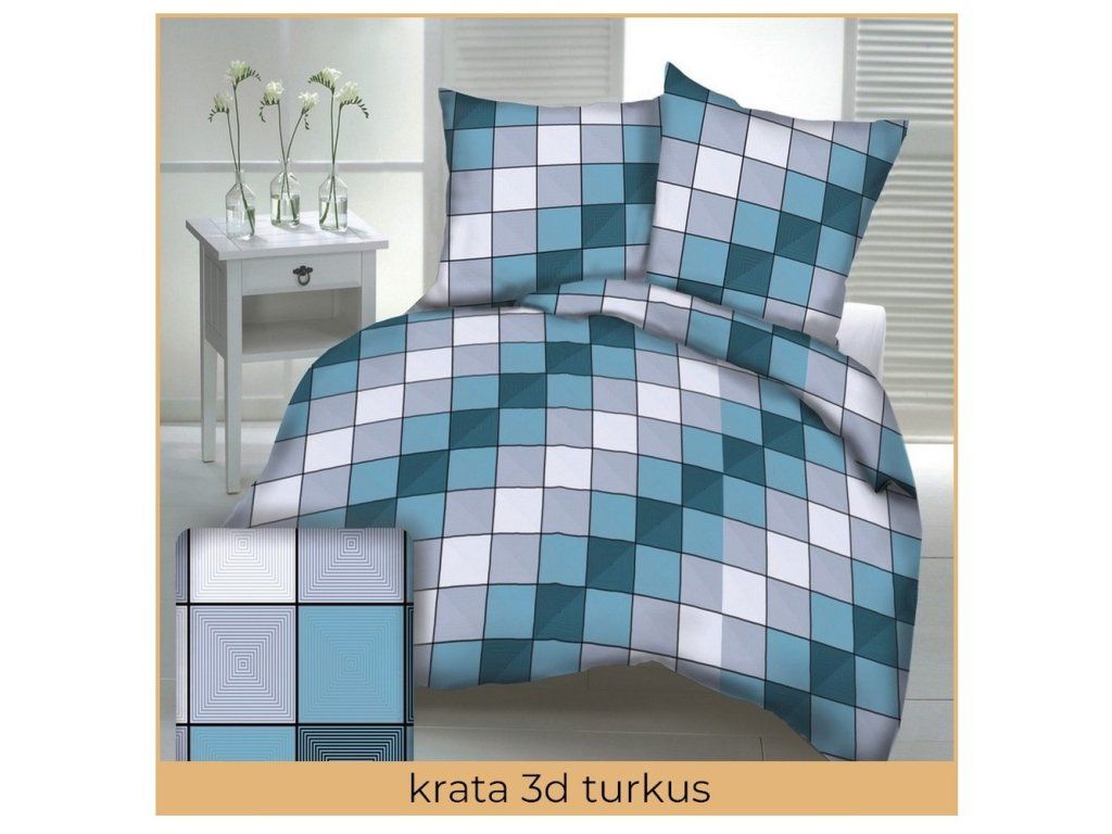 Súprava posteľnej bielizne 160x200 + 2x70x80, 100% bavlna, 140 g/m2, vzor: Kocka 3D Tyrkys