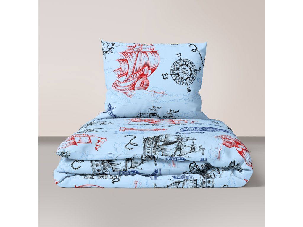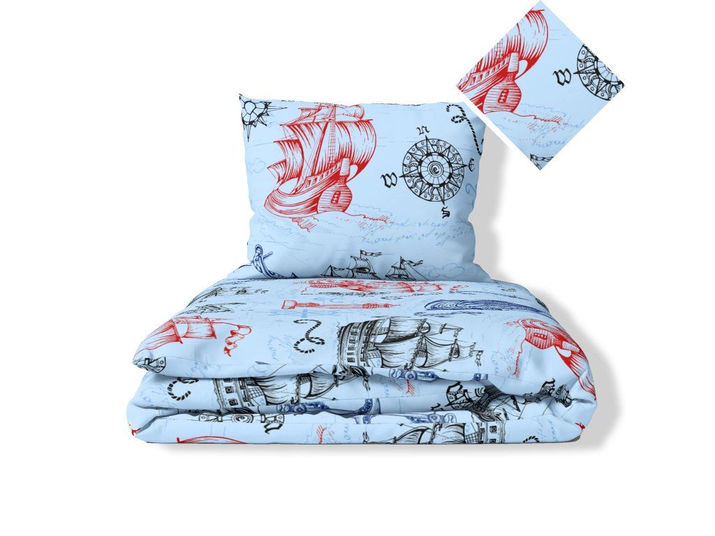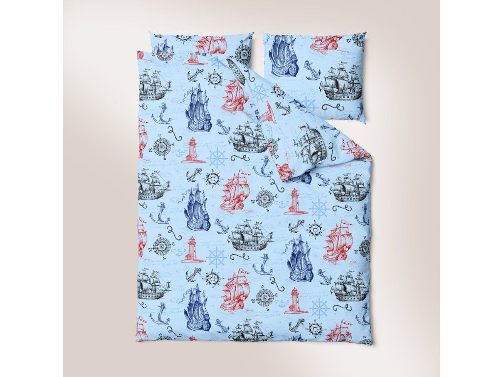Súprava posteľnej bielizne 160x200 + 2x70x80, 100% bavlna, 140g/m2, vzor: Baltik modrý