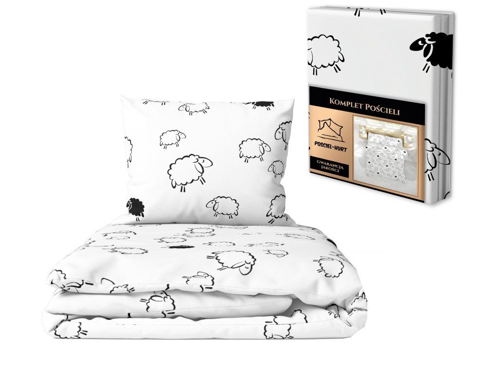 Súprava posteľnej bielizne 160x200 + 2x70x80, 100% bavlna, 140g/m2, vzor: baránky na bielom