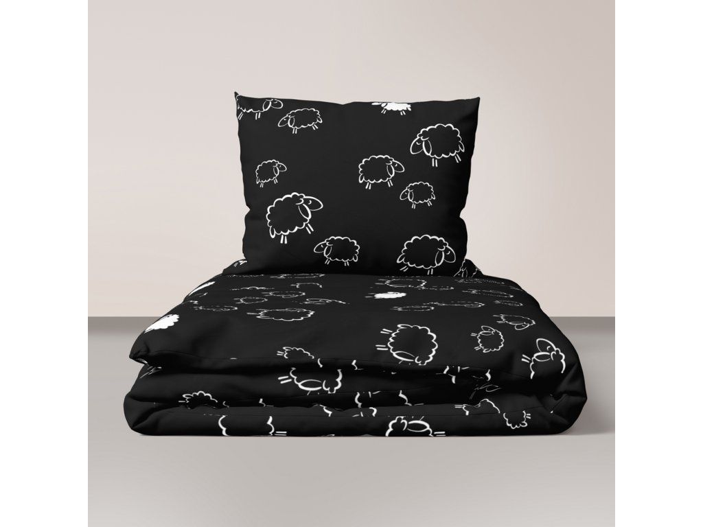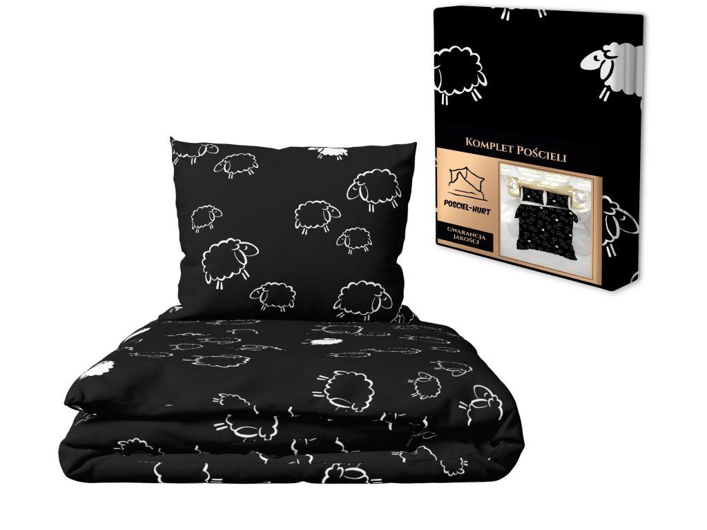 Súprava posteľnej bielizne 160x200cm + dve obliečky 70x80cm, 100% bavlna. Vzor: Čierne barančekyDodatočné parametre
