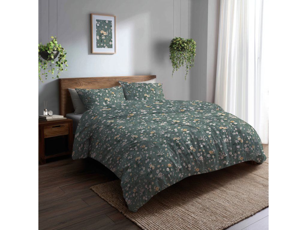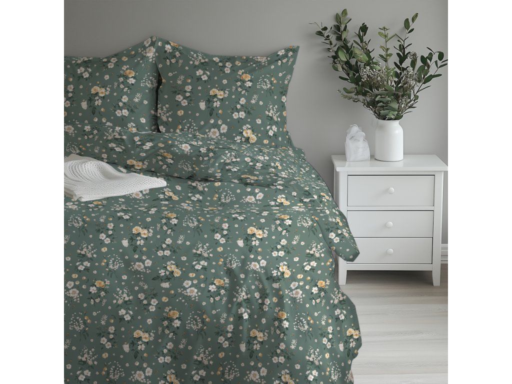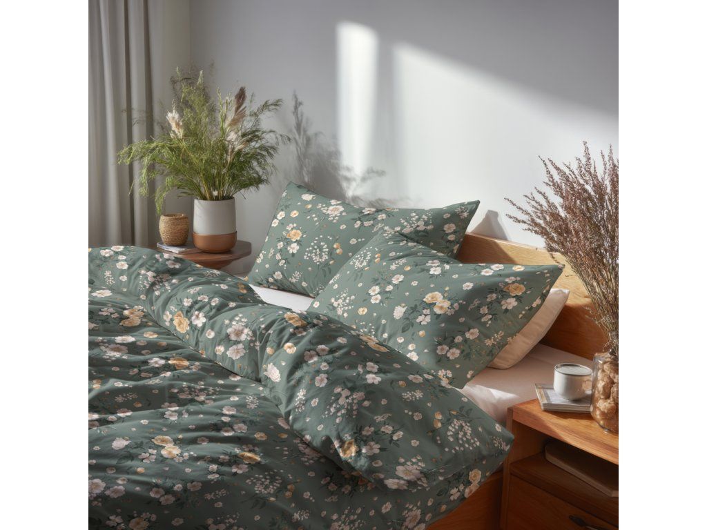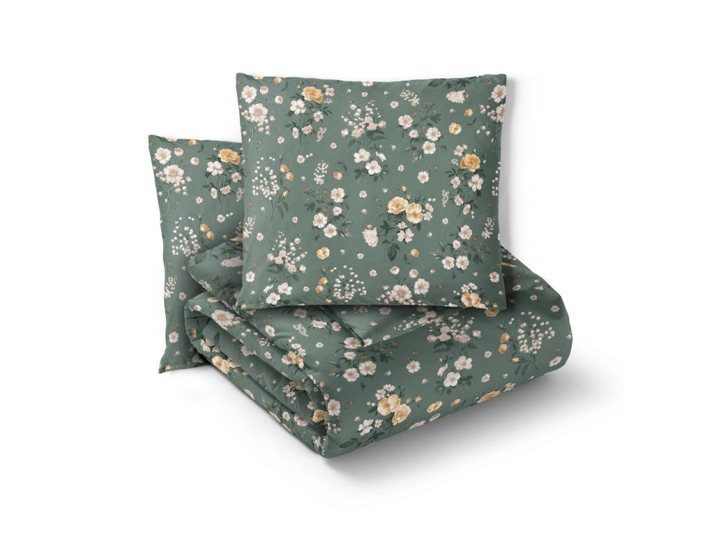 Súprava posteľnej bielizne 160x200 + 2x70x80, 100% bavlna, 140g/m2, vzor: Konvalinky Zelená