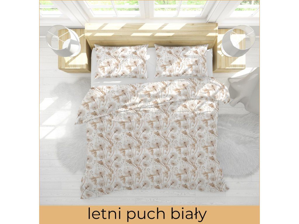 Súprava posteľnej bielizne 160x200cm + dve obliečky 70x80cm, 100% bavlna. Vzor: letné páperie bieleDodatočné parametre