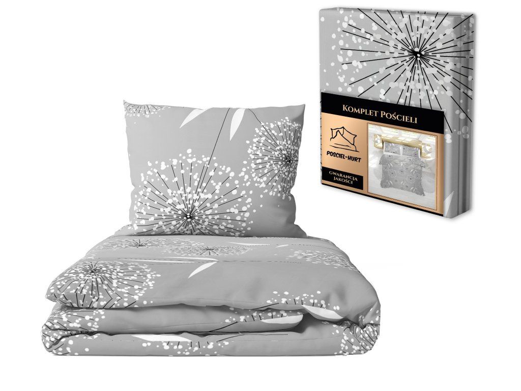 Bavlnená posteľná bielizeň 160x200cm + dve obliečky na vankúš 70x80cm, 100% bavlna, vzor: DMUCHAWCE SZAREDodatočné parametre