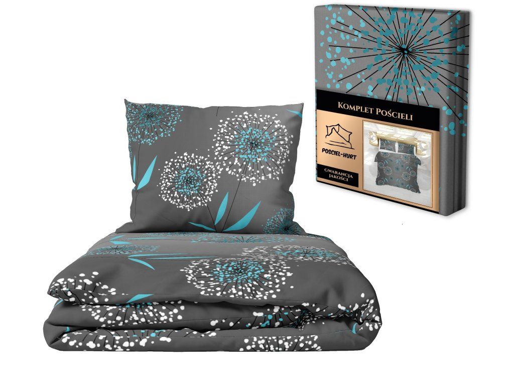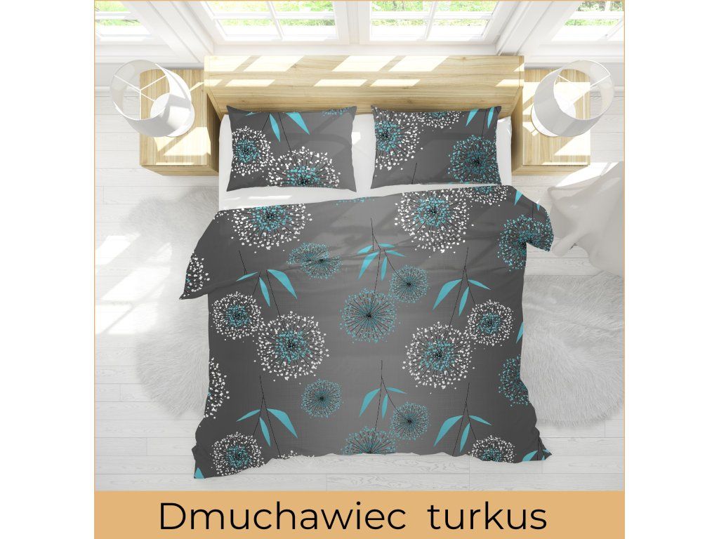 Bavlnená posteľná bielizeň 160x200cm + dve obliečky na vankúš 70x80cm, 100% bavlna, vzor: DMUCHAWCE TURKUSDodatočné parametre