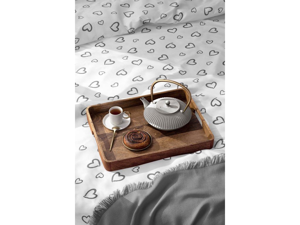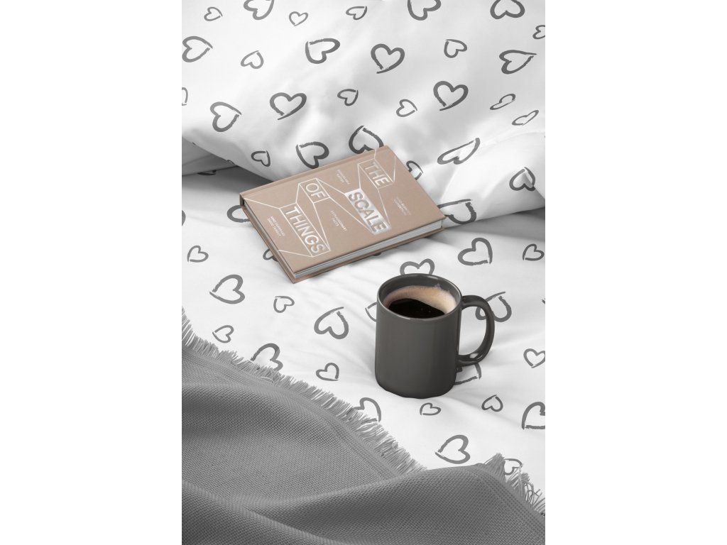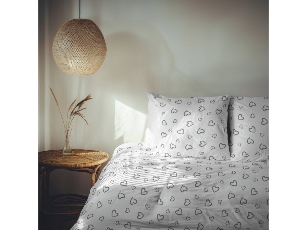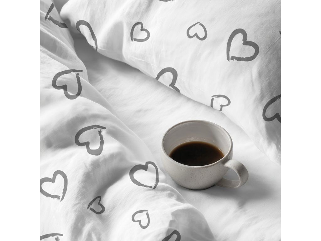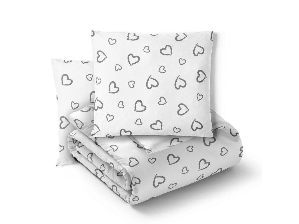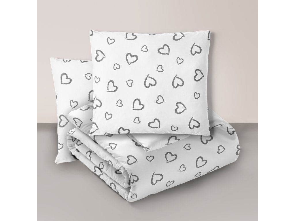 Súprava posteľnej bielizne 160x200 + 2x70x80, 100% bavlna, 140g/m2, vzor: Sivé srdcia s obrysom na bielom