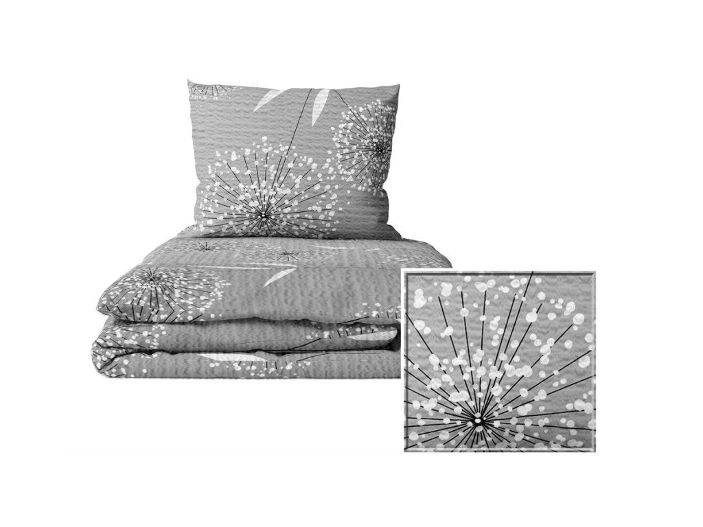 Súprava posteľnej bielizne z KREPU 160x200cm, bavlna, vzor: Púpava sivá