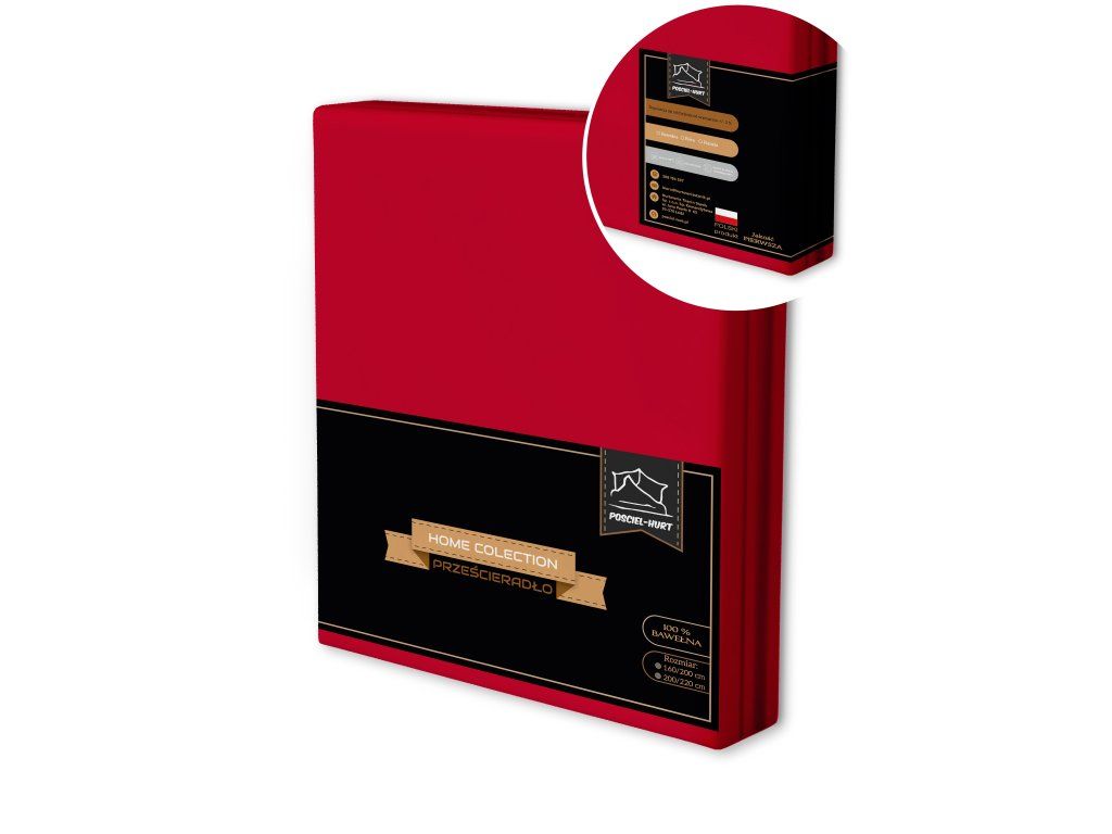 Tradičná plachta 160x200CM bez gumy 100% BAVLNA - červená