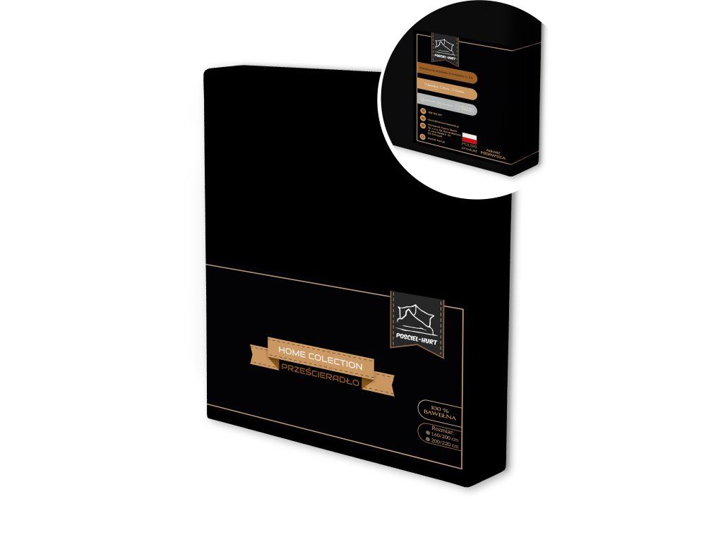 Tradičná plachta 160x200CM bez gumy 100% BAVLNA - čierna
