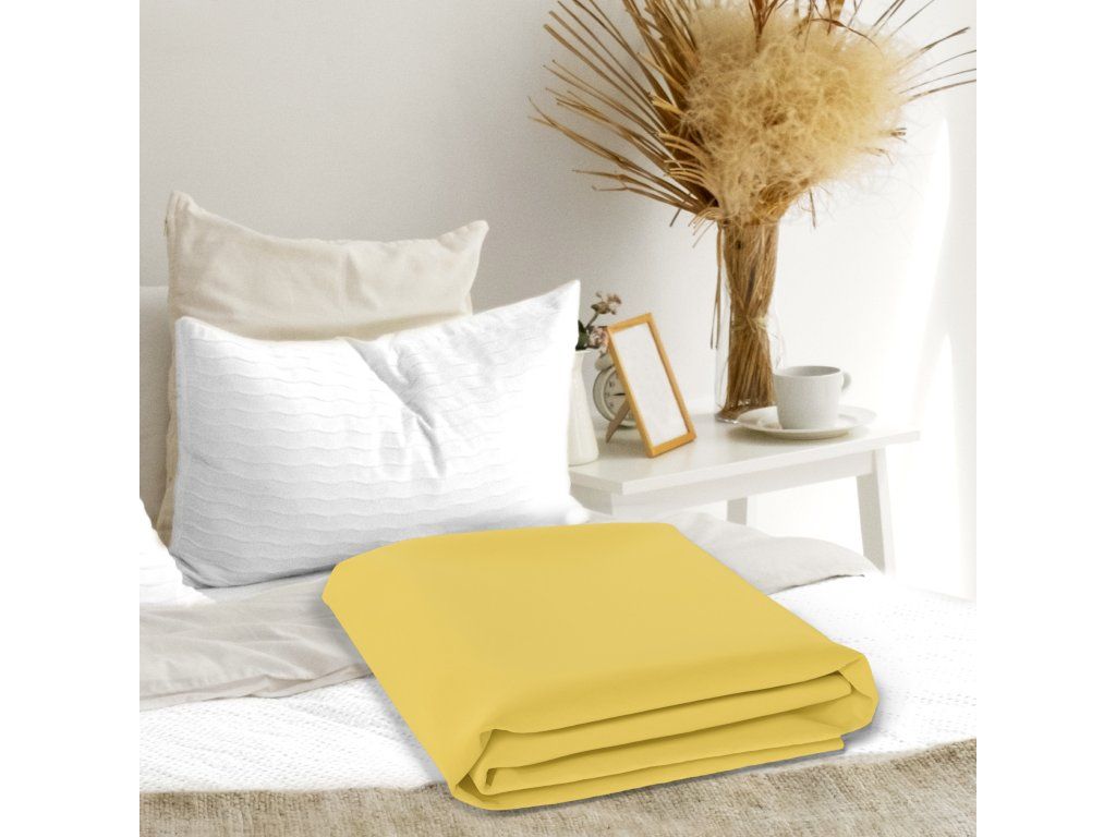 Tradičná plachta 160x200CM bez gumy 100% BAVLNA - slnečná žltá