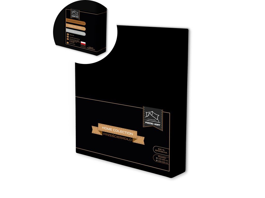 Tradičné prestieradlo 200x220CM bez gumy BAVLNA 100% čierna