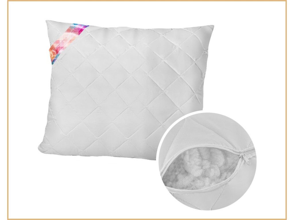 Výplň vankúša tvorí najkvalitnejšia silikónová guľôčka, ktorá sa ideálne prispôsobí tvaru hlavy. Vankúš je veľmi nadýchaný (hmotnosť výplne je až 1kg), no vďaka všitému zipsu môžete jednoducho vybrať prebytok a prispôsobiť hrúbku svojim preferenciám.