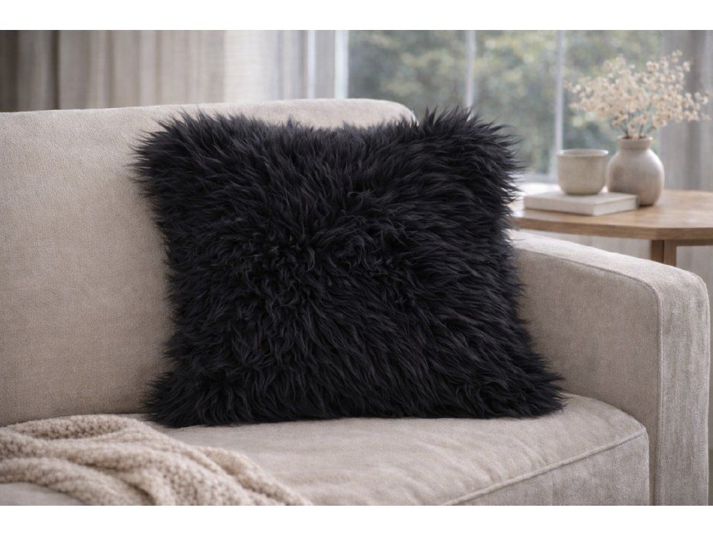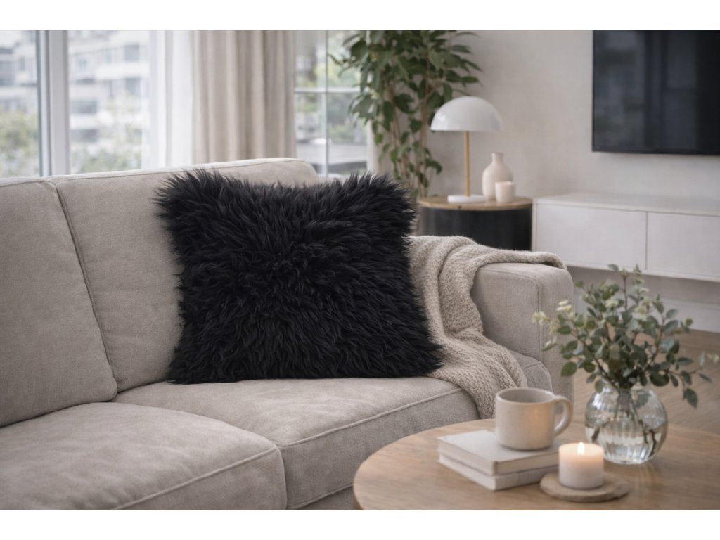 Vankúš z ovčej kožušiny čierny – prírodný komfort a nadčasový štýl pre váš domov