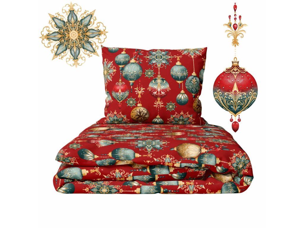 Vneste do svojej spálne čaro Vianoc vďaka našej výnimočnej vianočnej posteľnej bielizni 140x200 cm s milým motívom vianočných ozdôb. Je to skvelá voľba na Vianoce, ktorá nielen ozdobí váš interiér, ale aj zabezpečí pohodlný spánok počas zimných nocí.