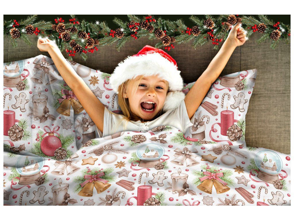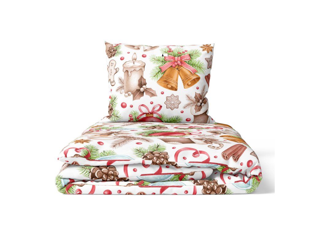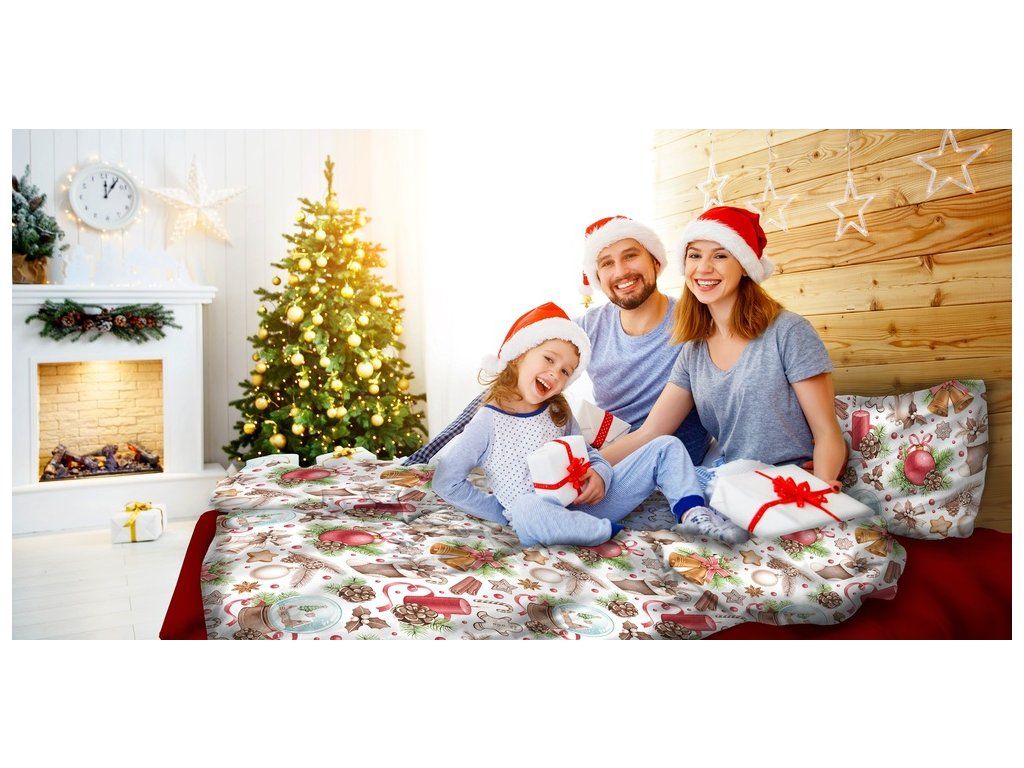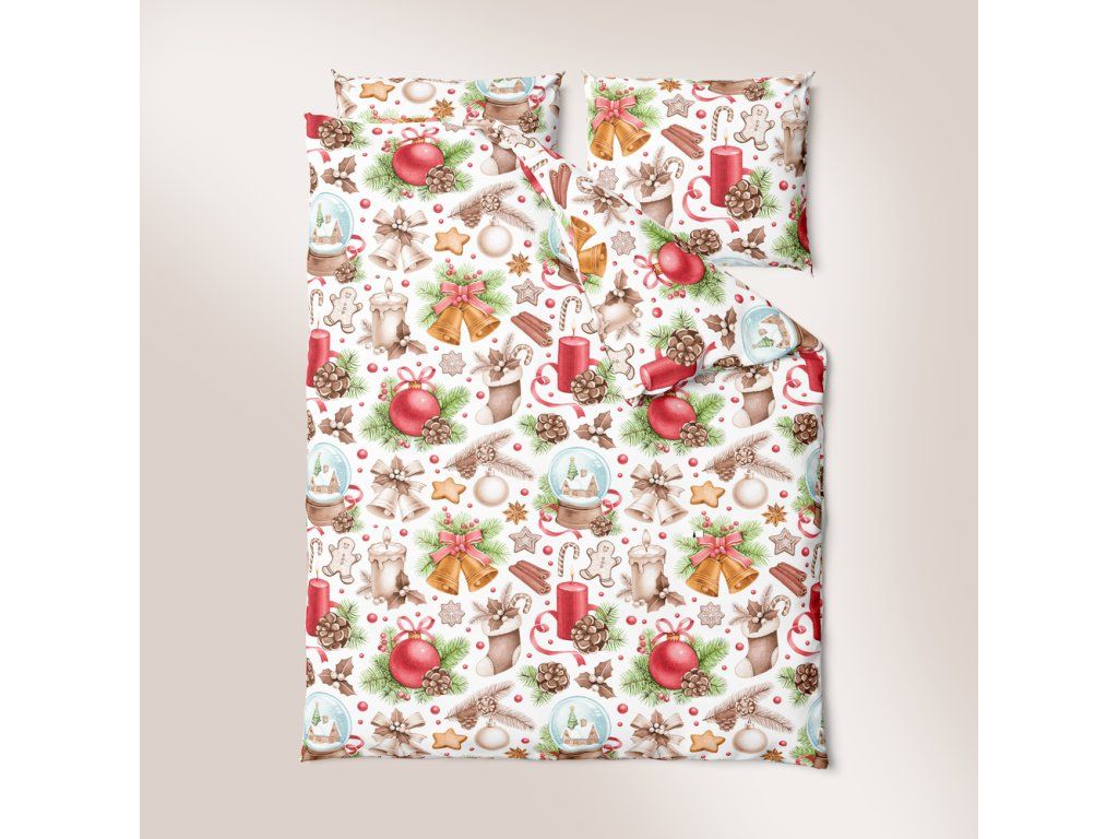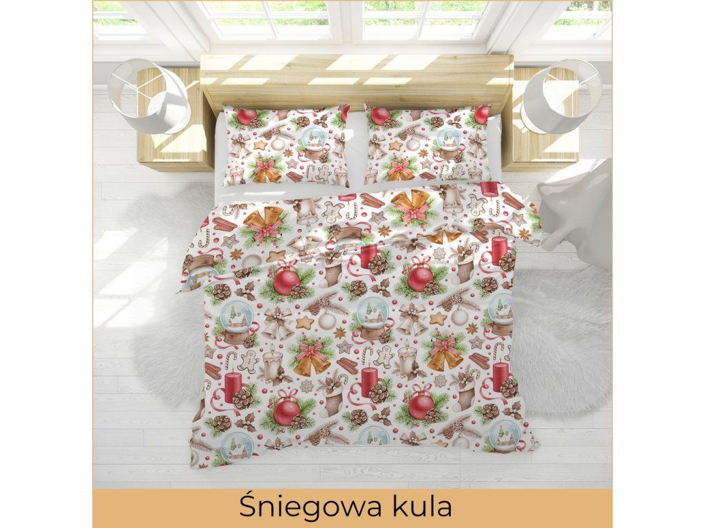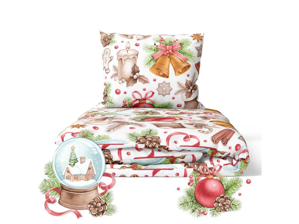 Vianočná posteľná bielizeň 140x200cm, 70x80cm, 140g/m2, bavlna 100% : Snehová guľa