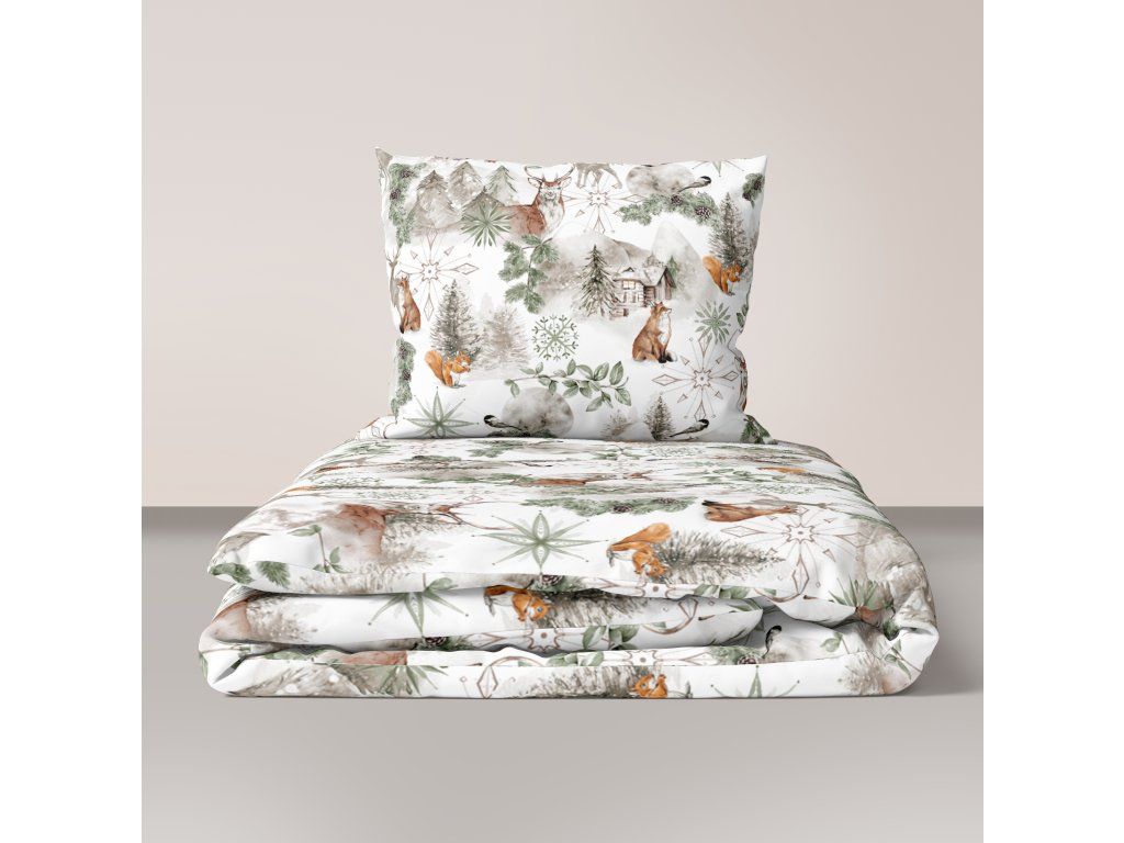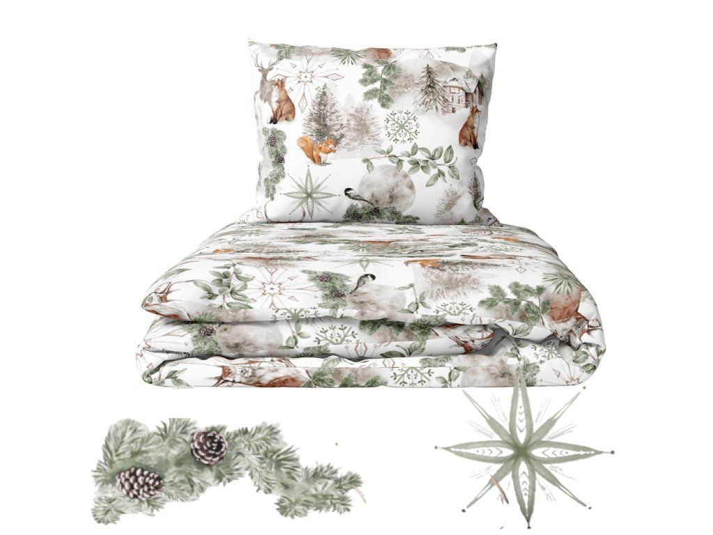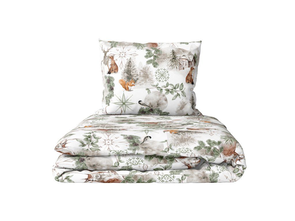 Vianočné detské obliečky 140x200+70x80 zimná bavlna, výrobca, LAPONIA ZELENÁ