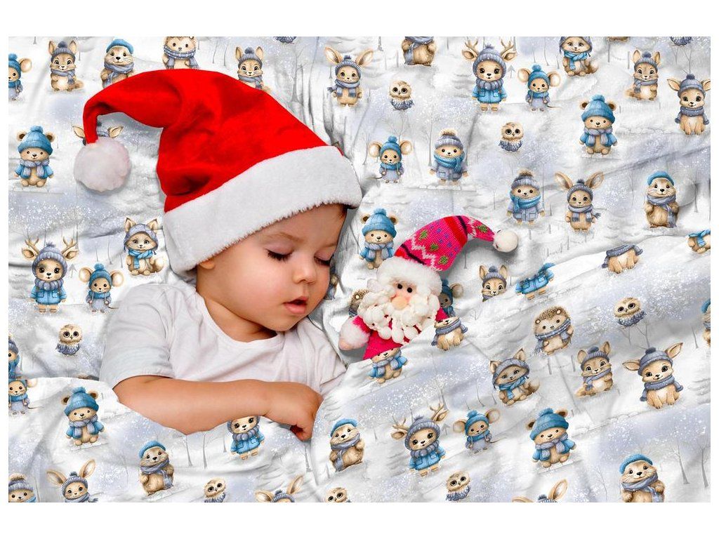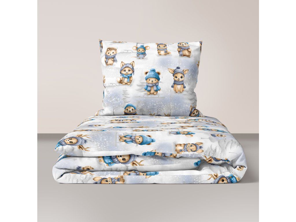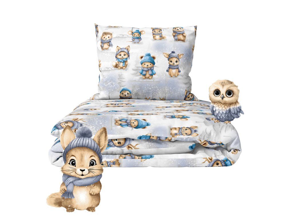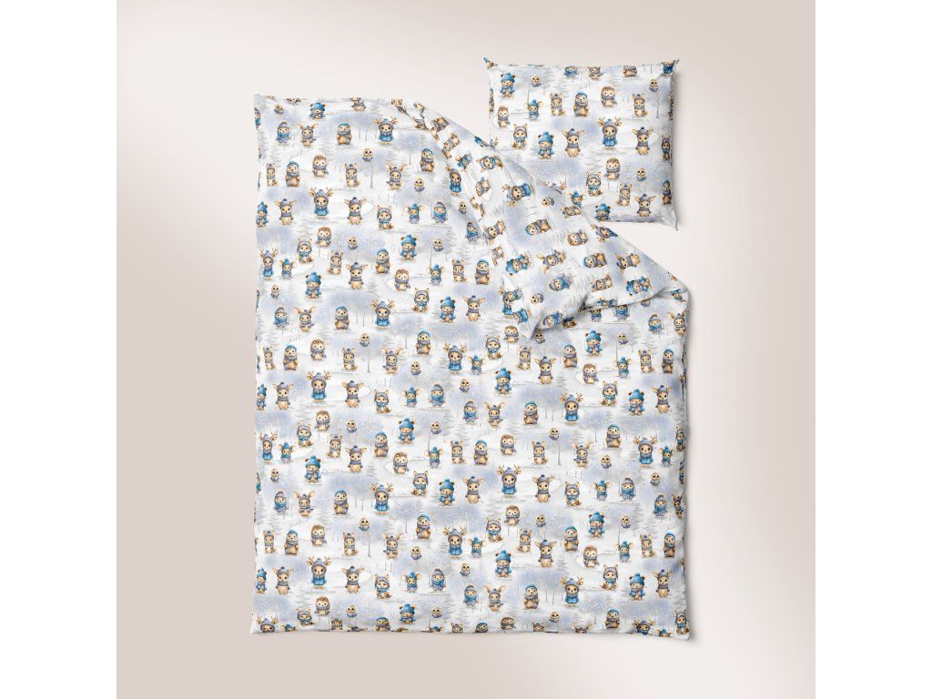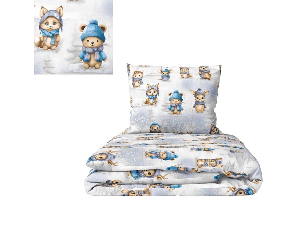 Vianočné detské posteľné obliečky 140x200+70x80 zimná bavlna, Zimné zvieratá sivé