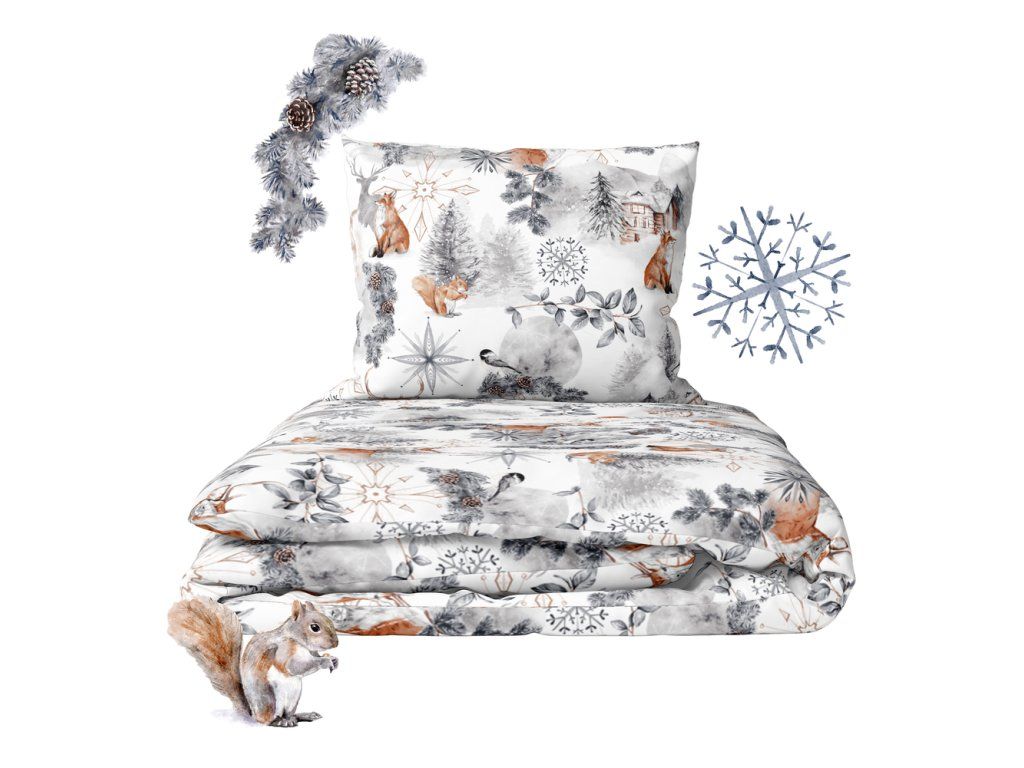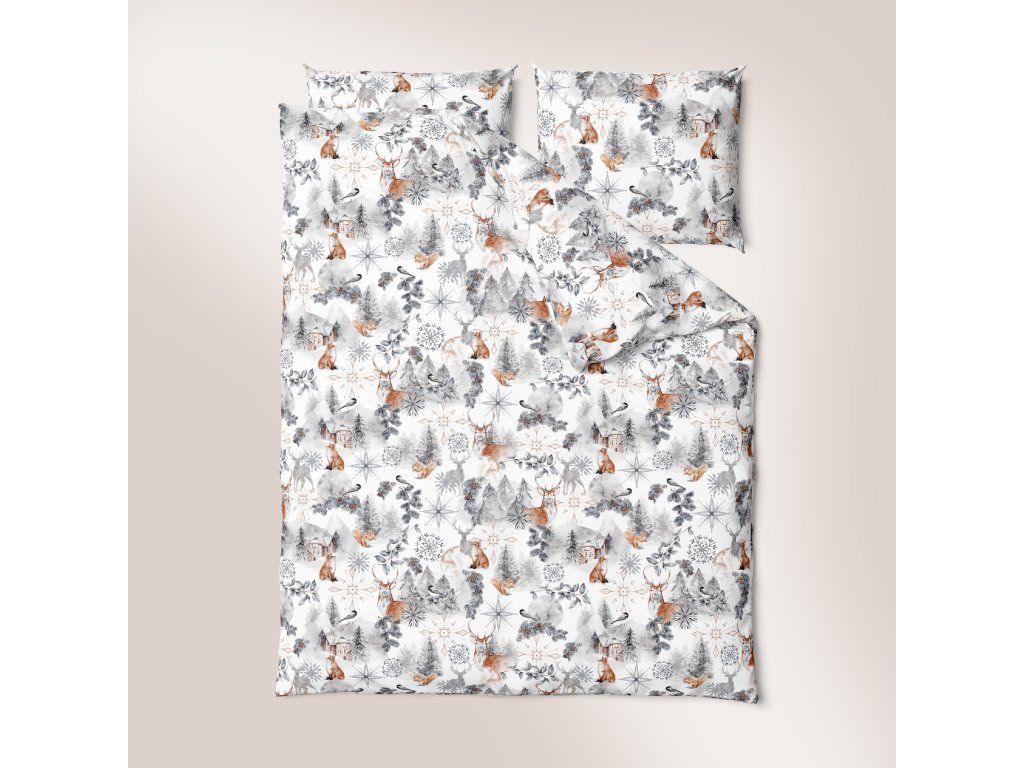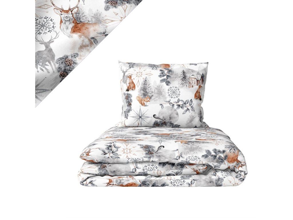 Vianočná súprava posteľnej bielizne 140x200 cm, zimná, 100% bavlna, vzor: laponia sivá