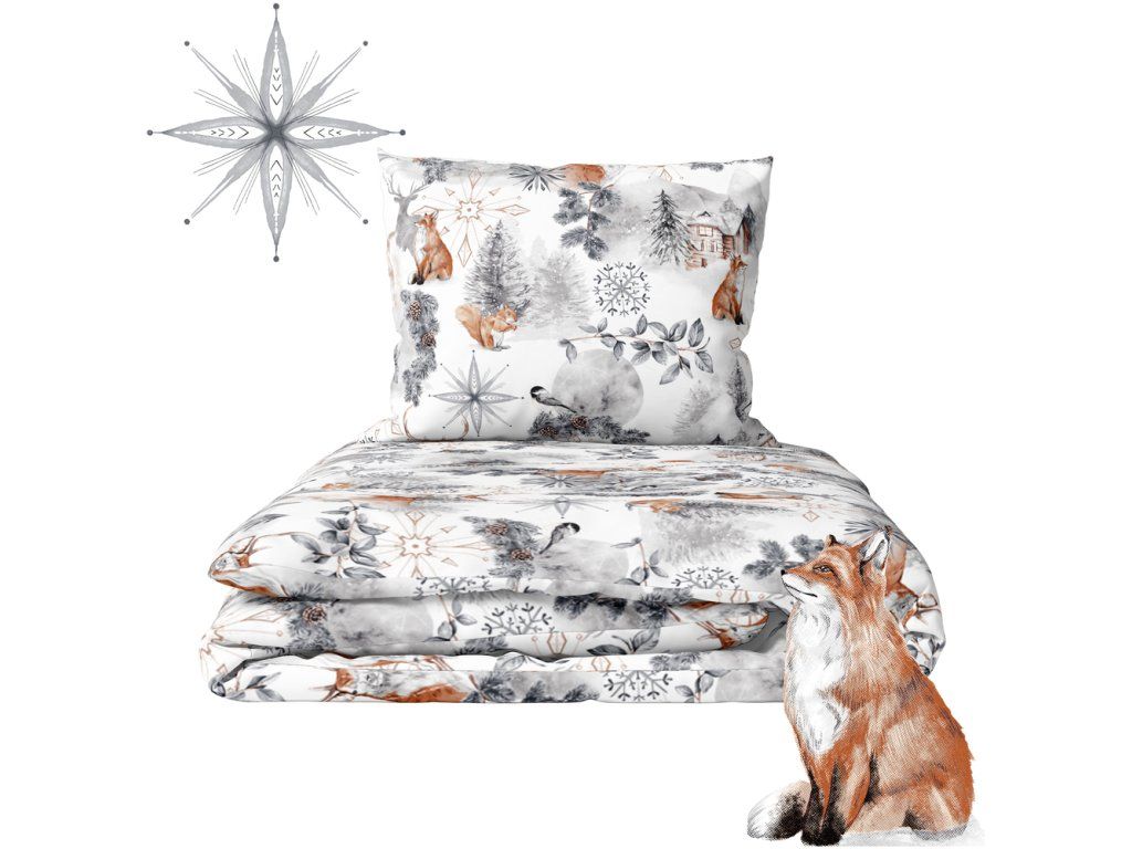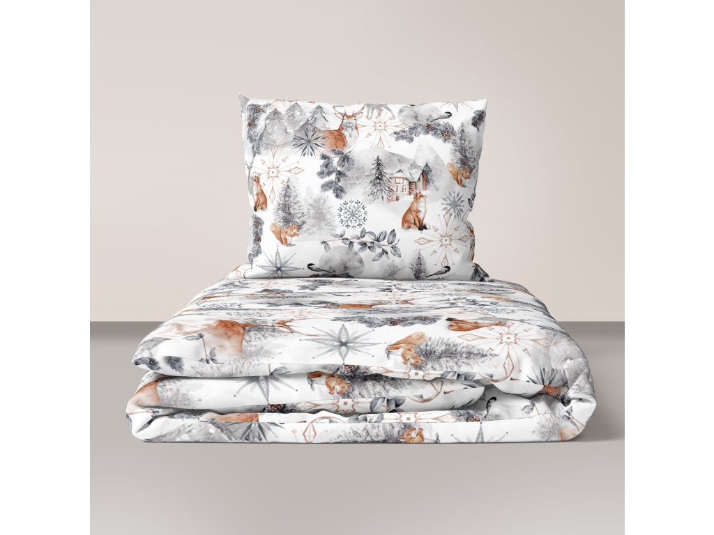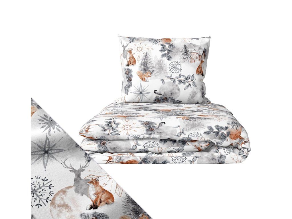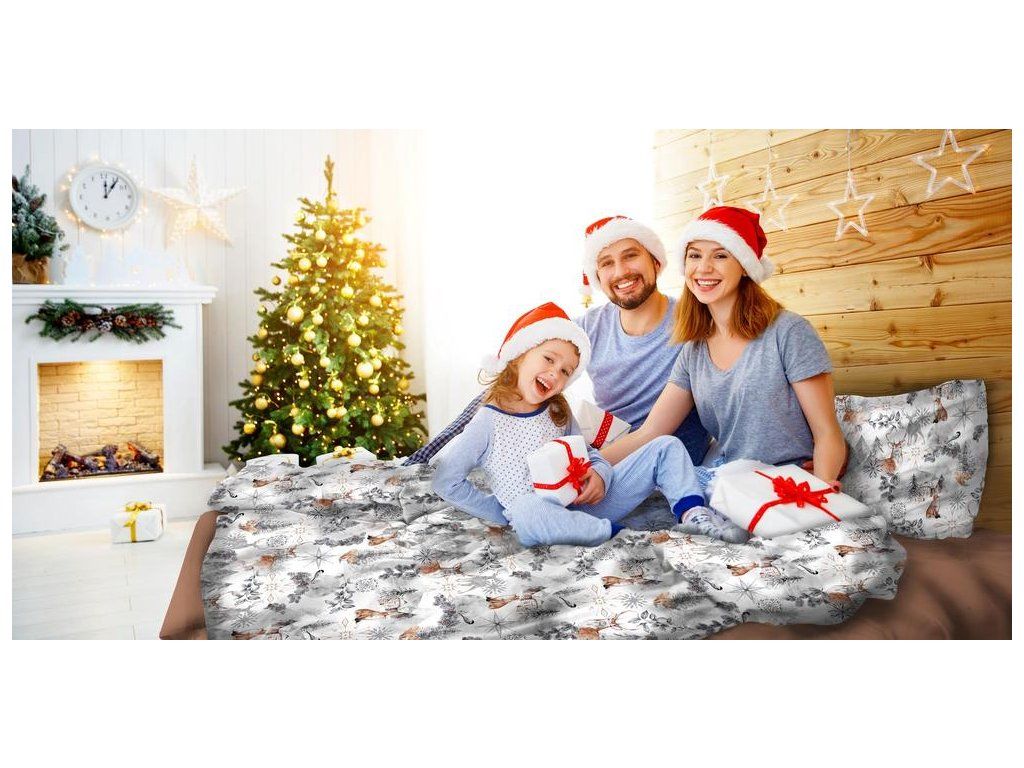 Vianočná súprava posteľnej bielizne 160x200 cm, zimná, 100% bavlna, vzor: laponia sivá