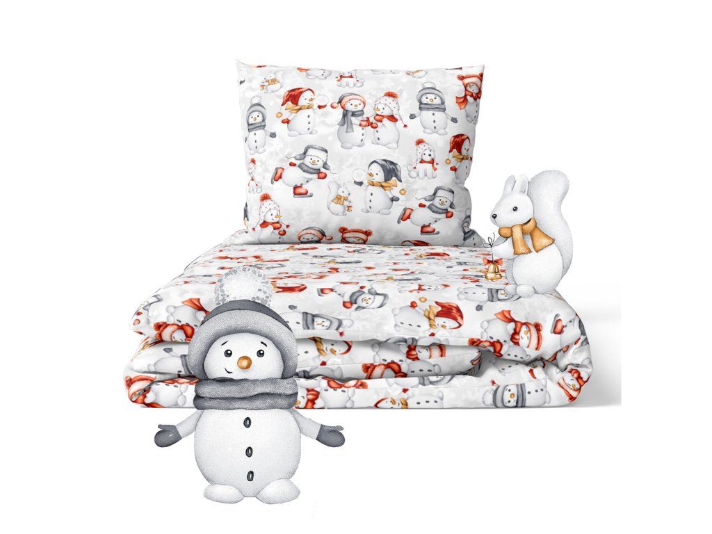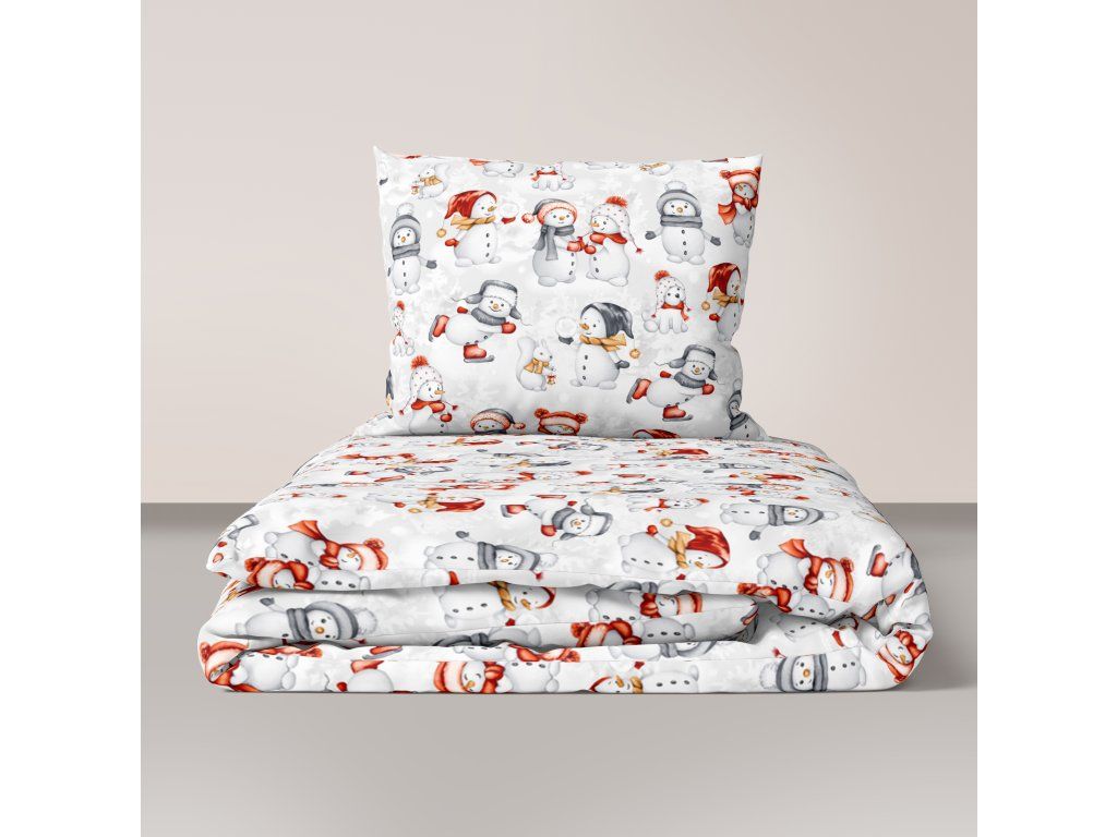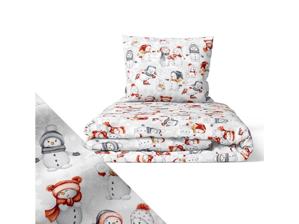 Vianočná súprava posteľnej bielizne 160x200 cm, zimná, 100% bavlna, vzor: snehuliaci