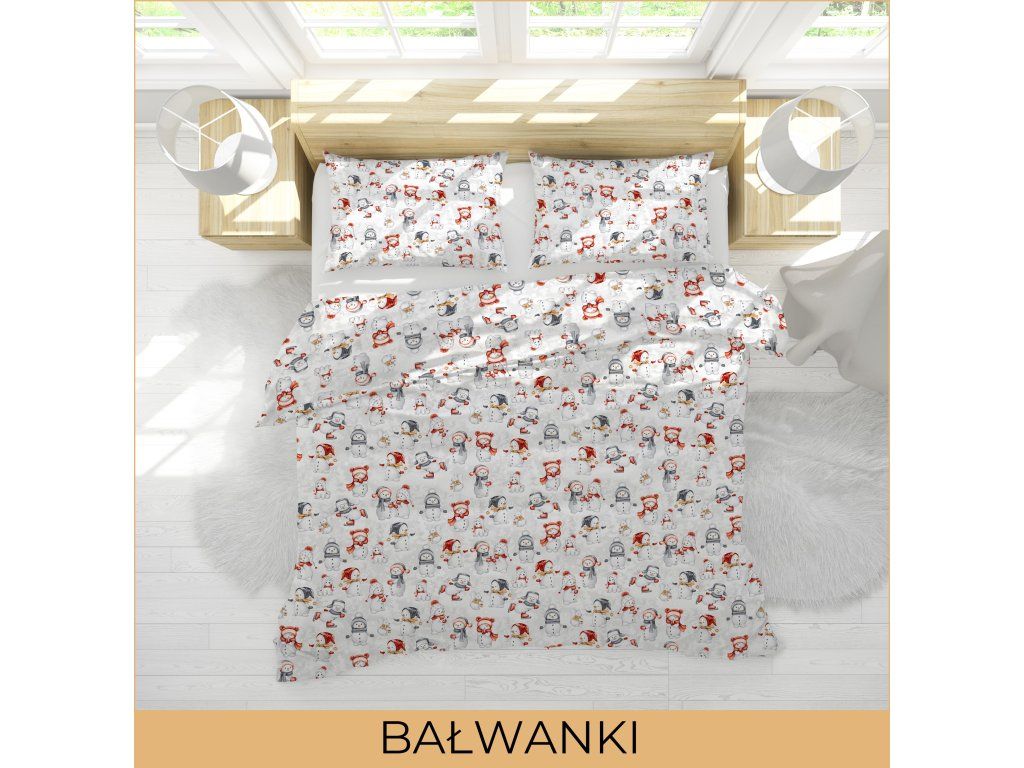 Vianočný set obliečok 160x200 + 2x70x80, 100% bavlna, 140g/m2, vzor: SNEHULIACI