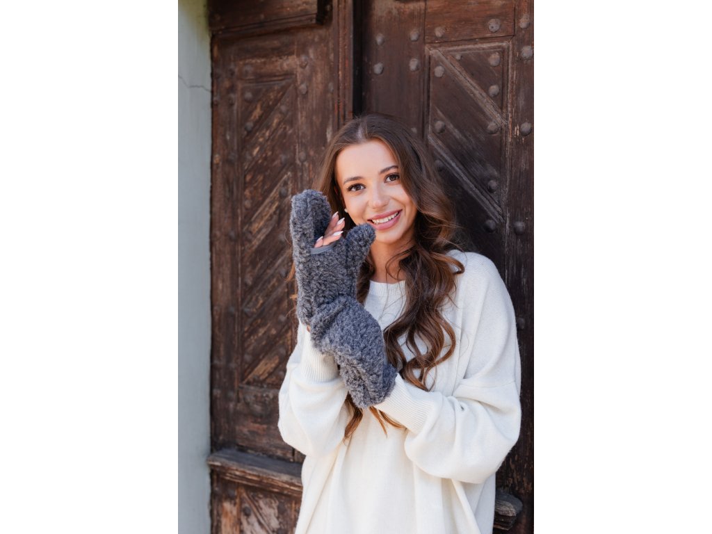 Vlnené rukavice s otvorom na prsty sivé